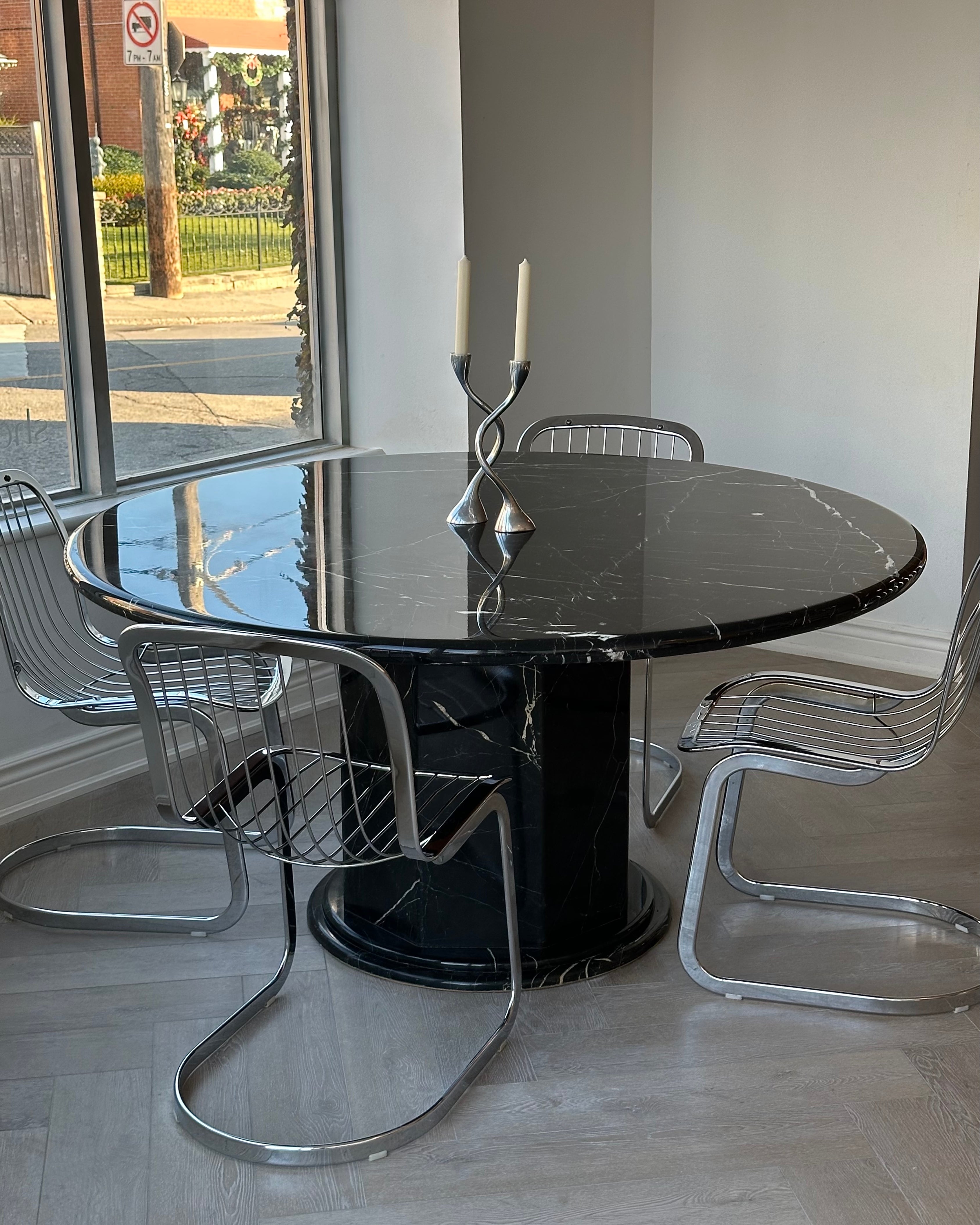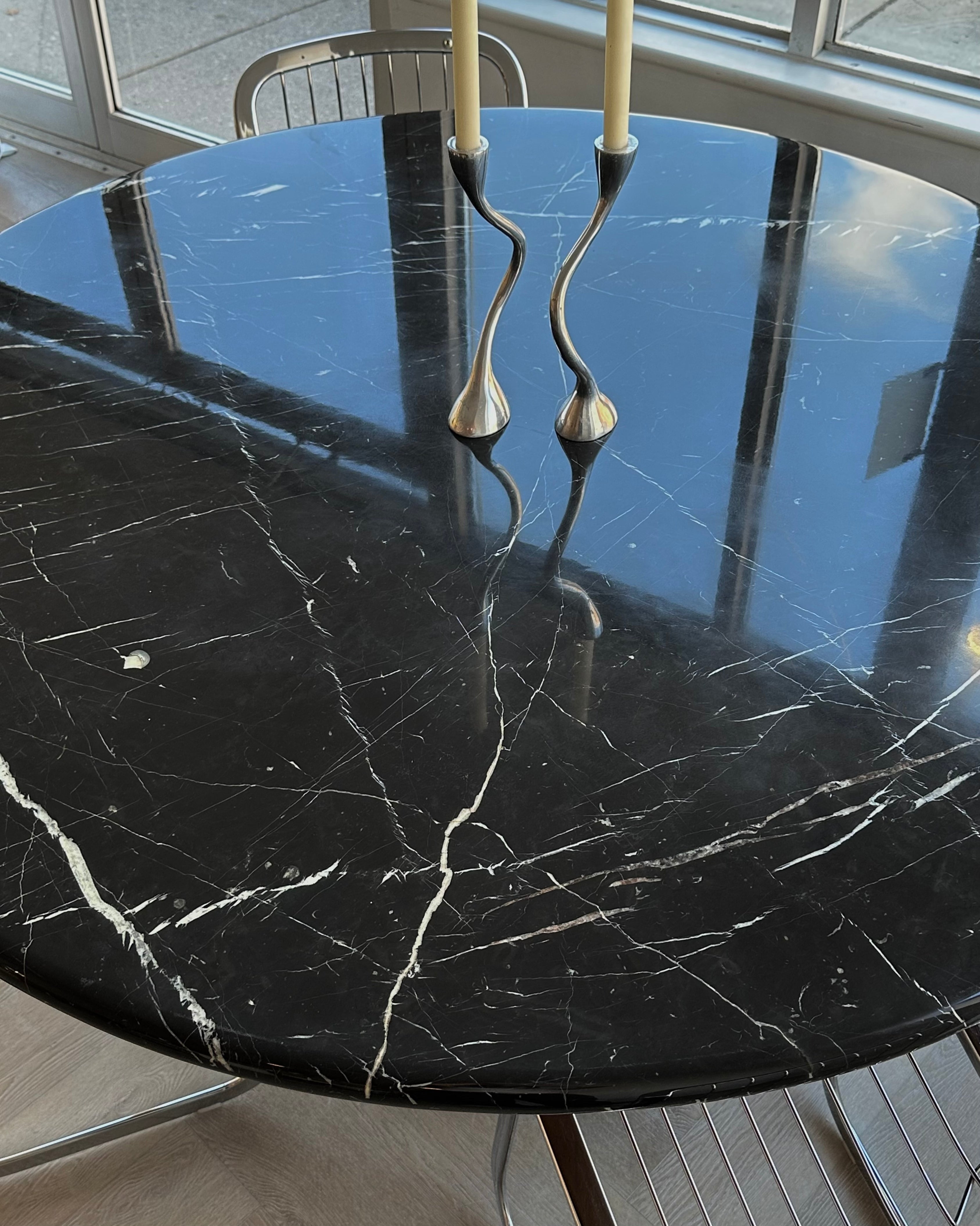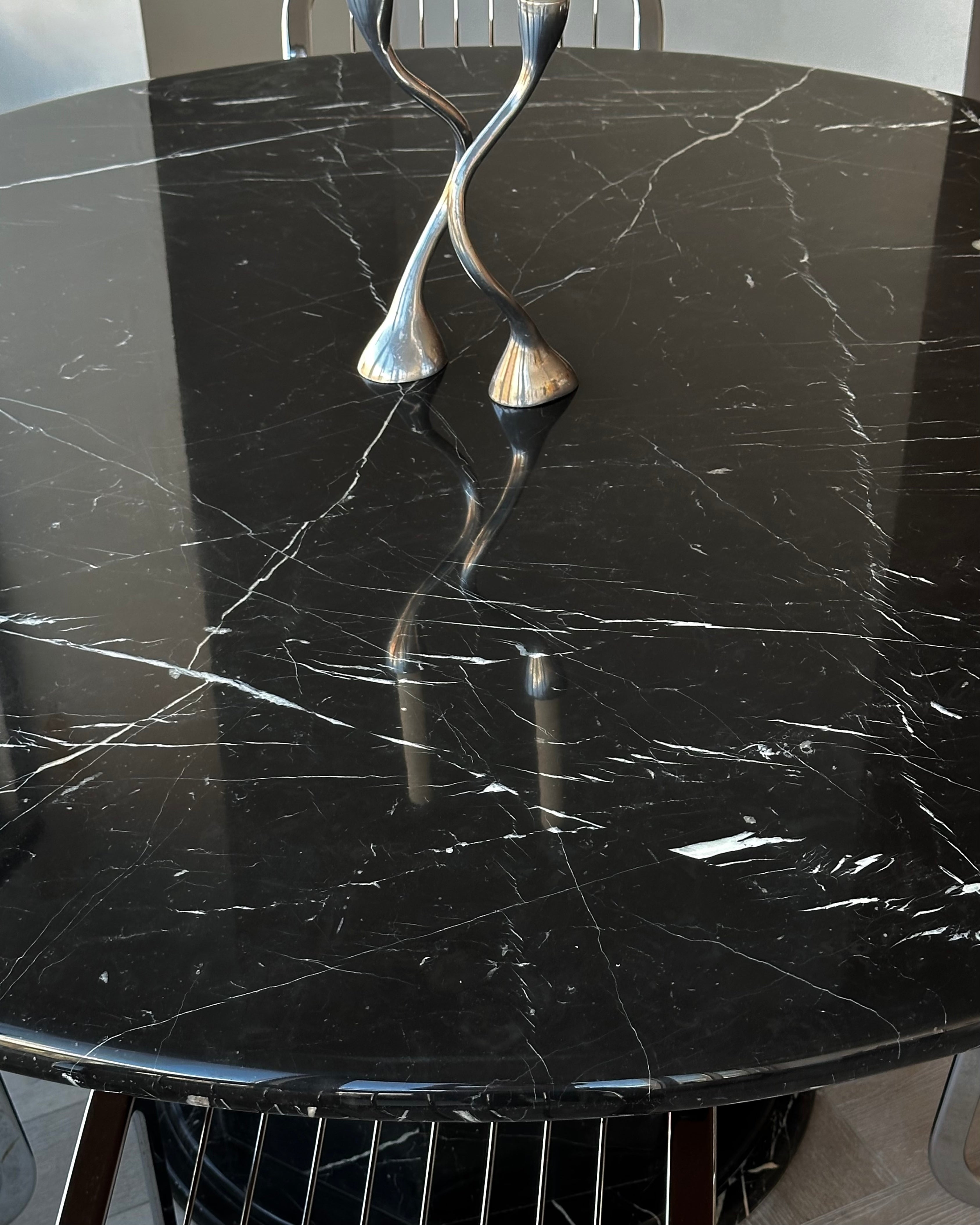 Round Nero Marquina Marble Pedestal Table