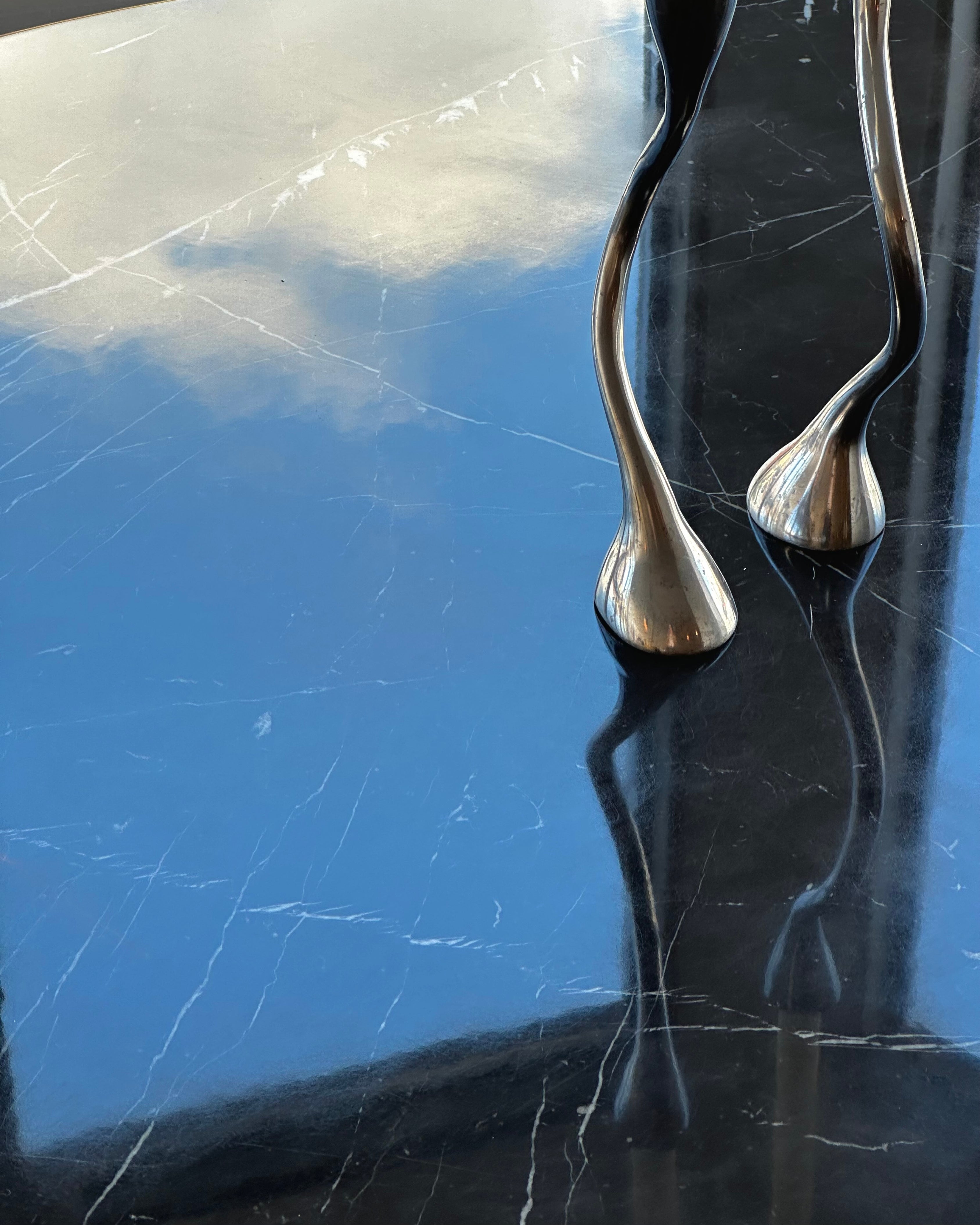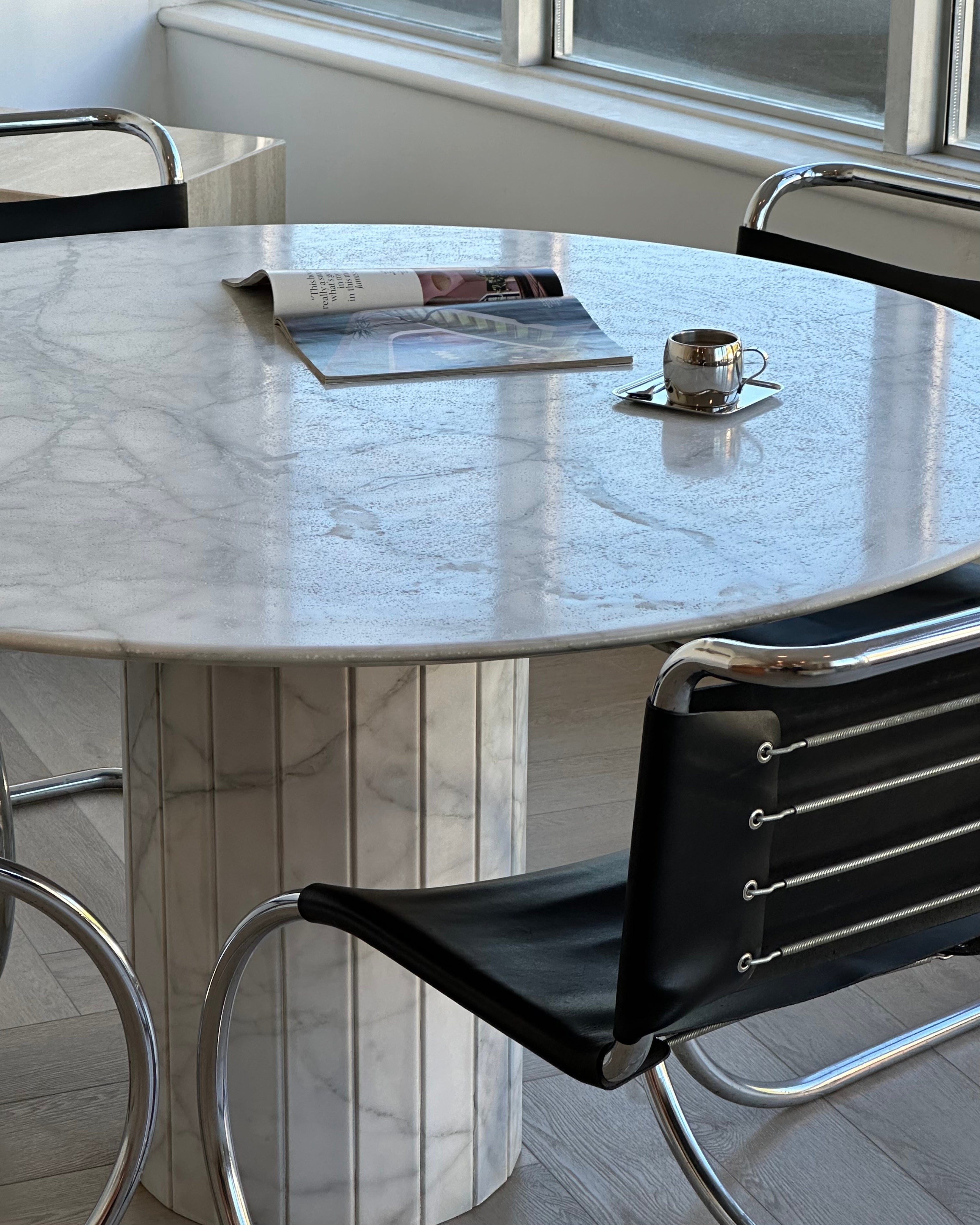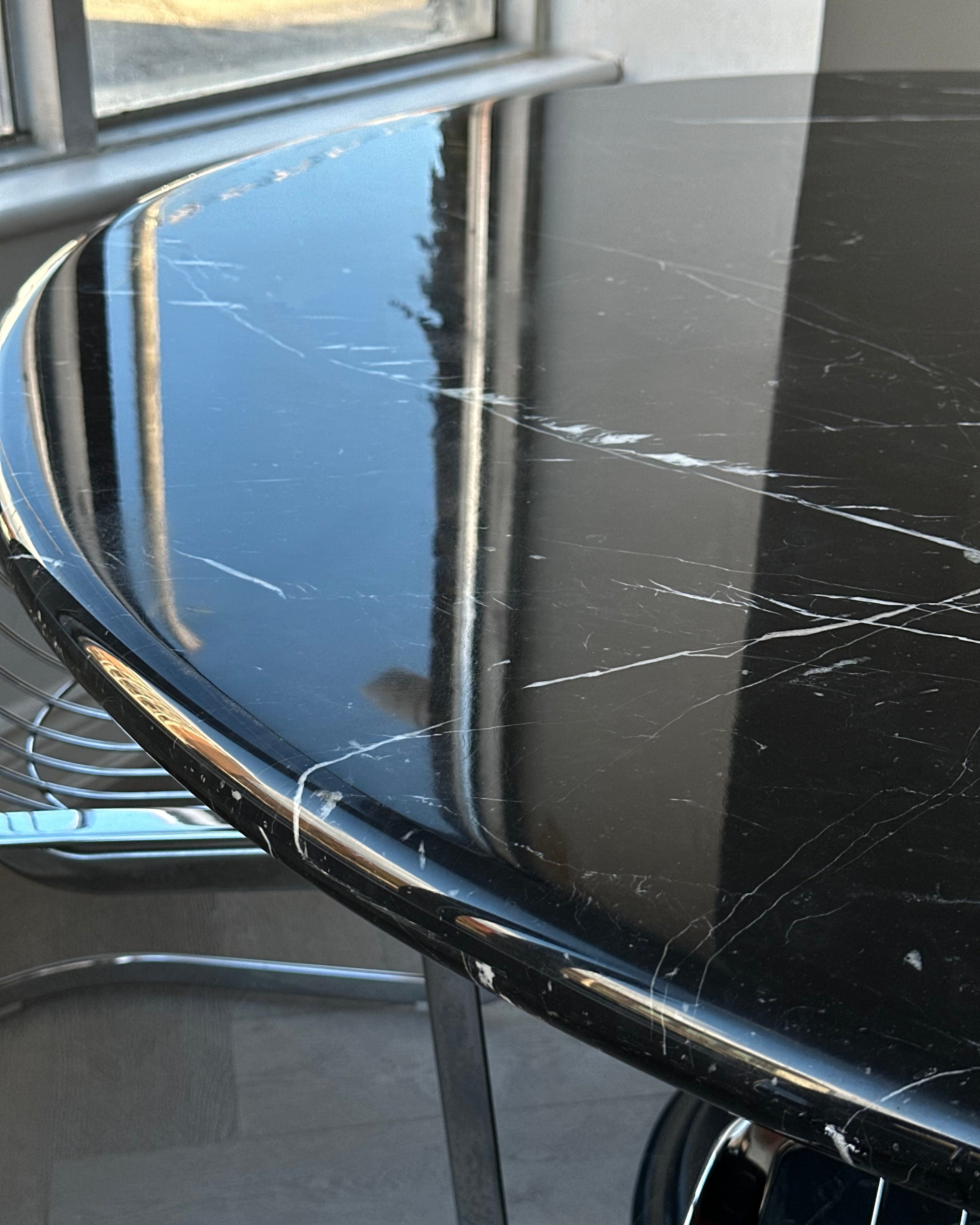 Round Nero Marquina Marble Pedestal Table