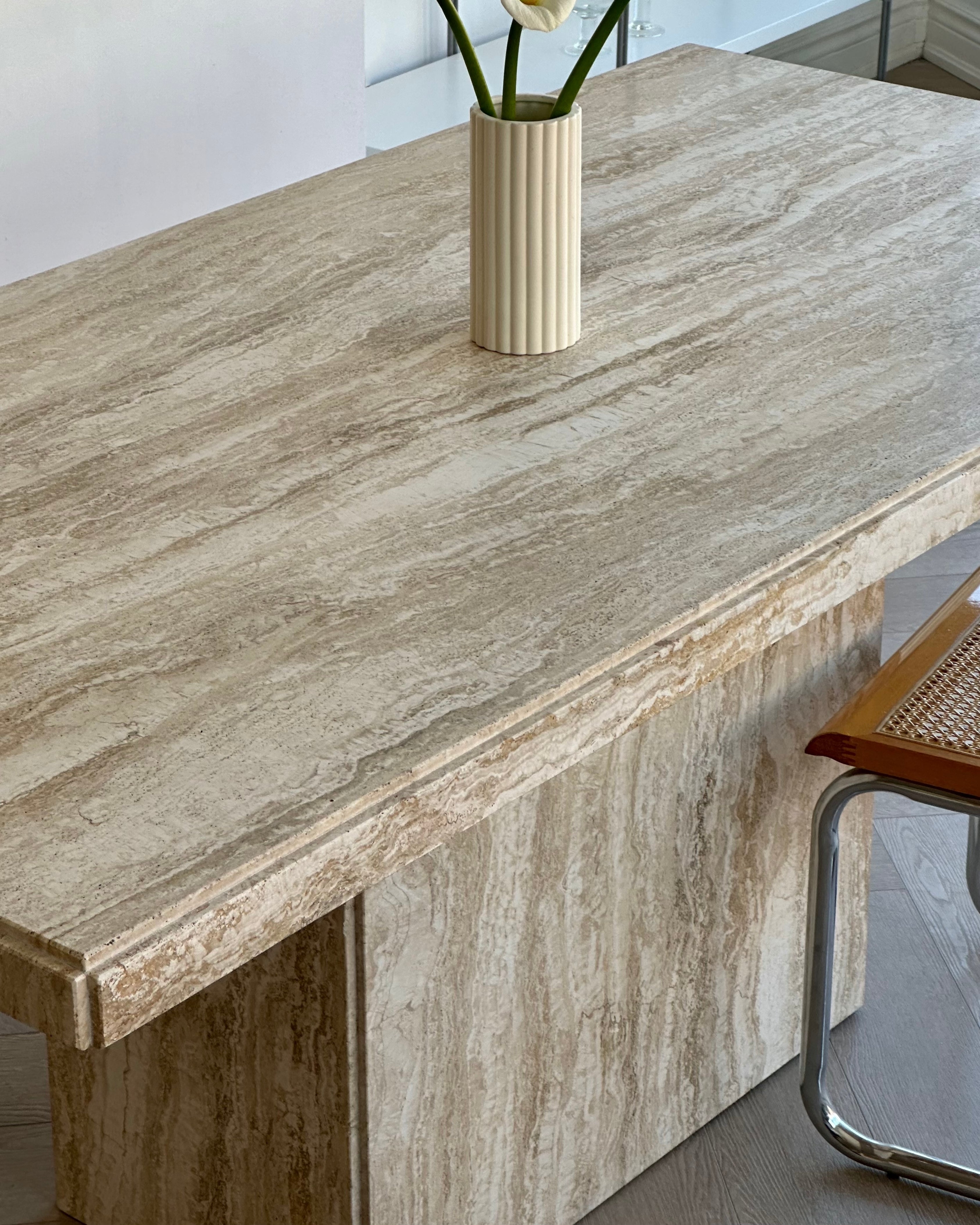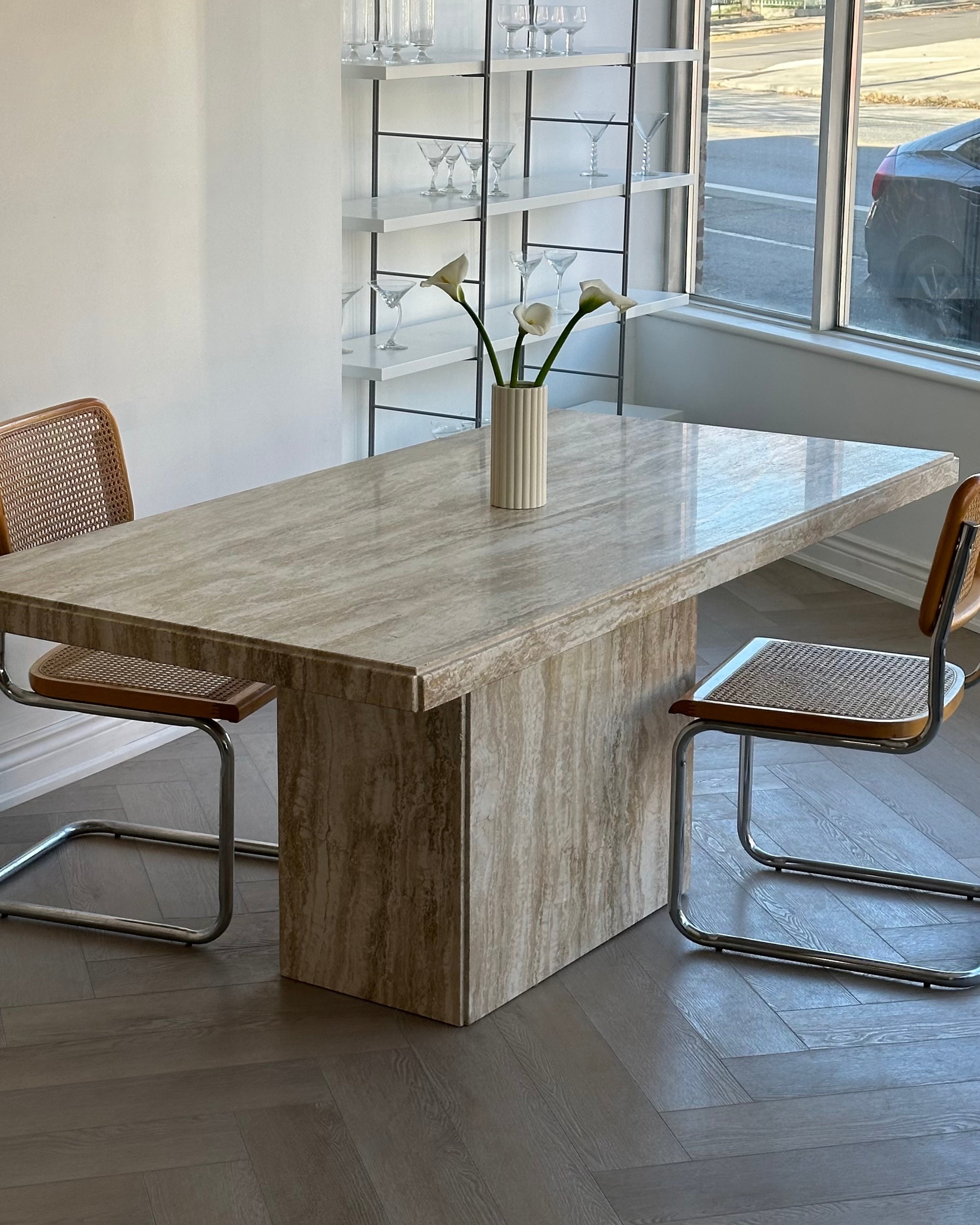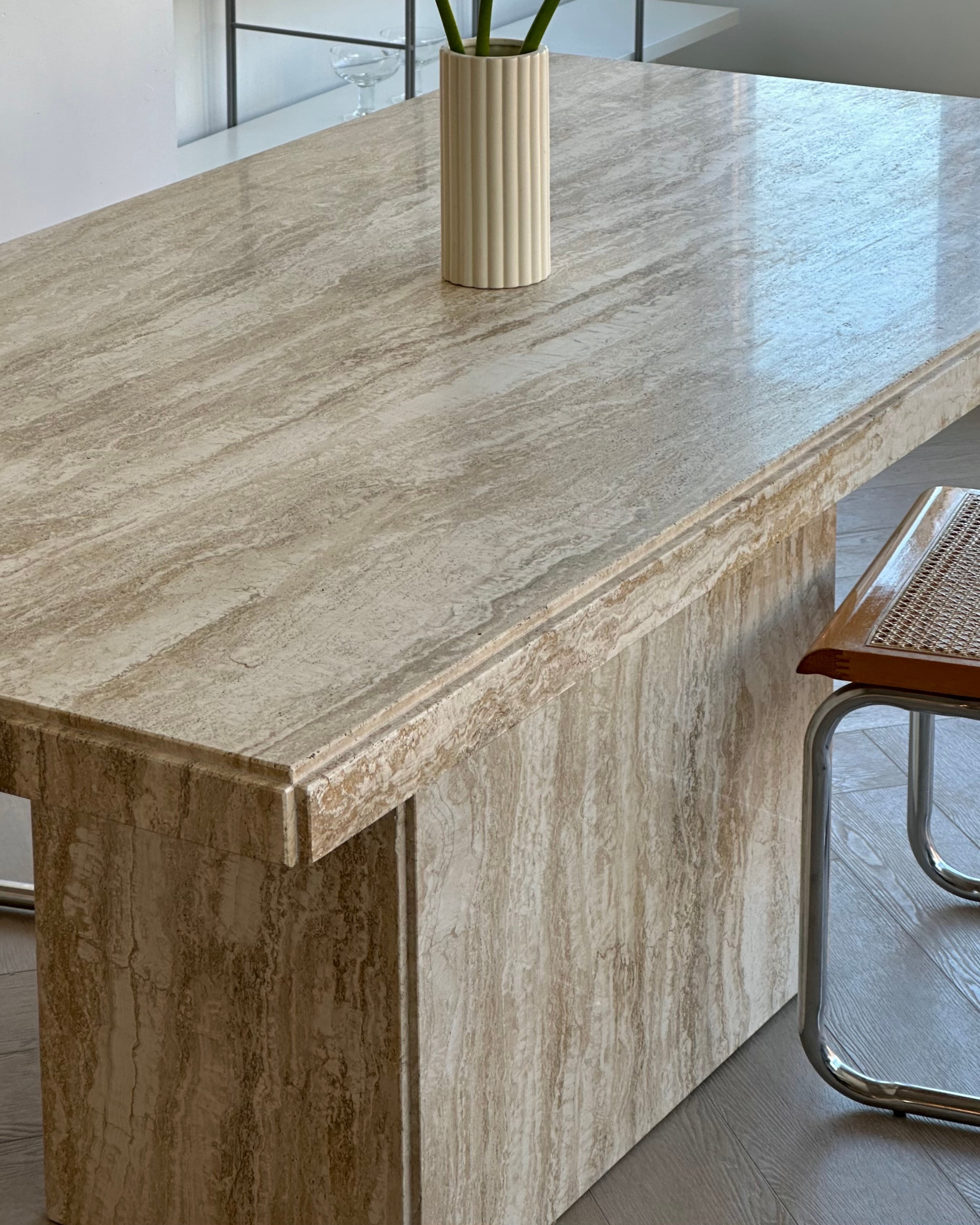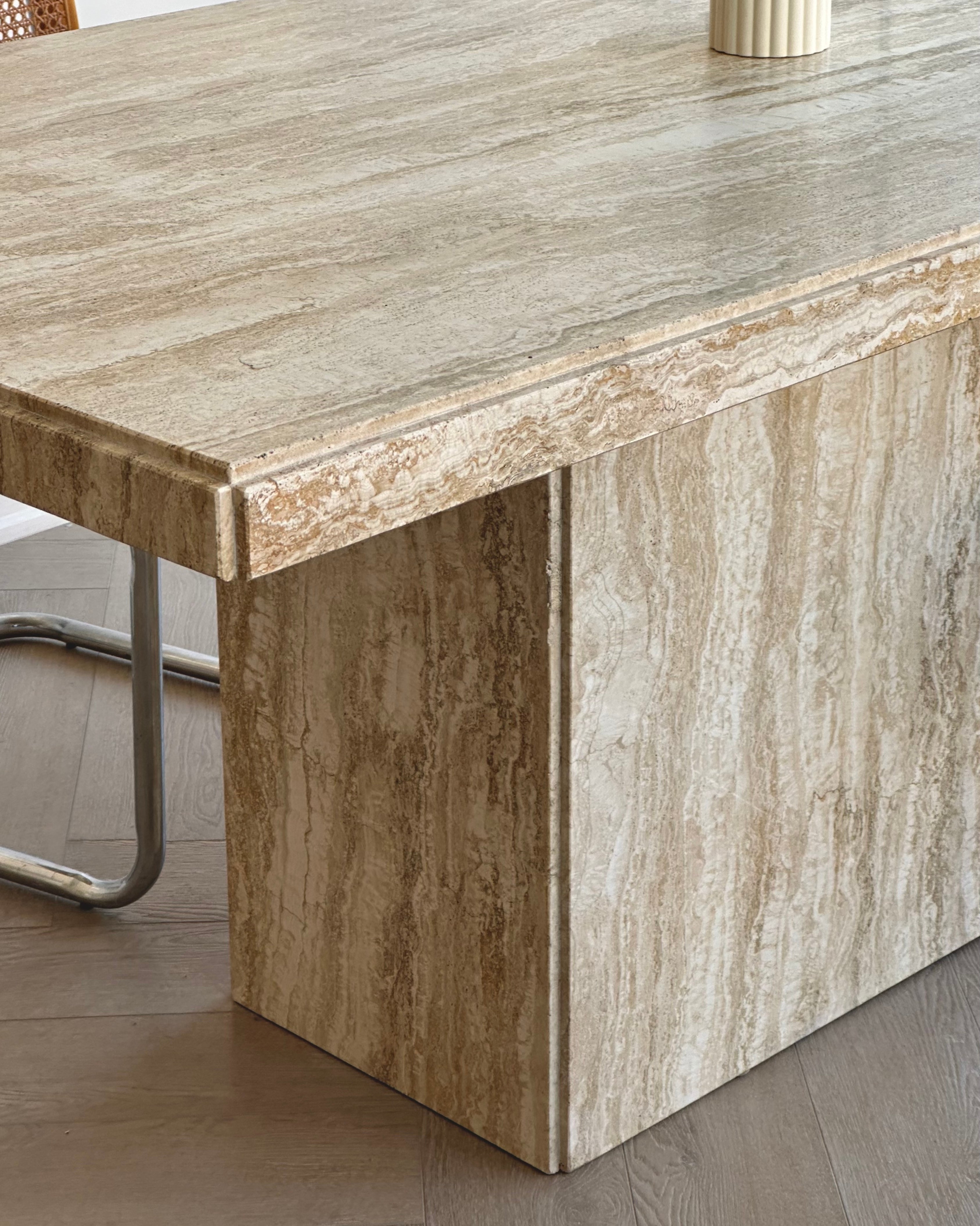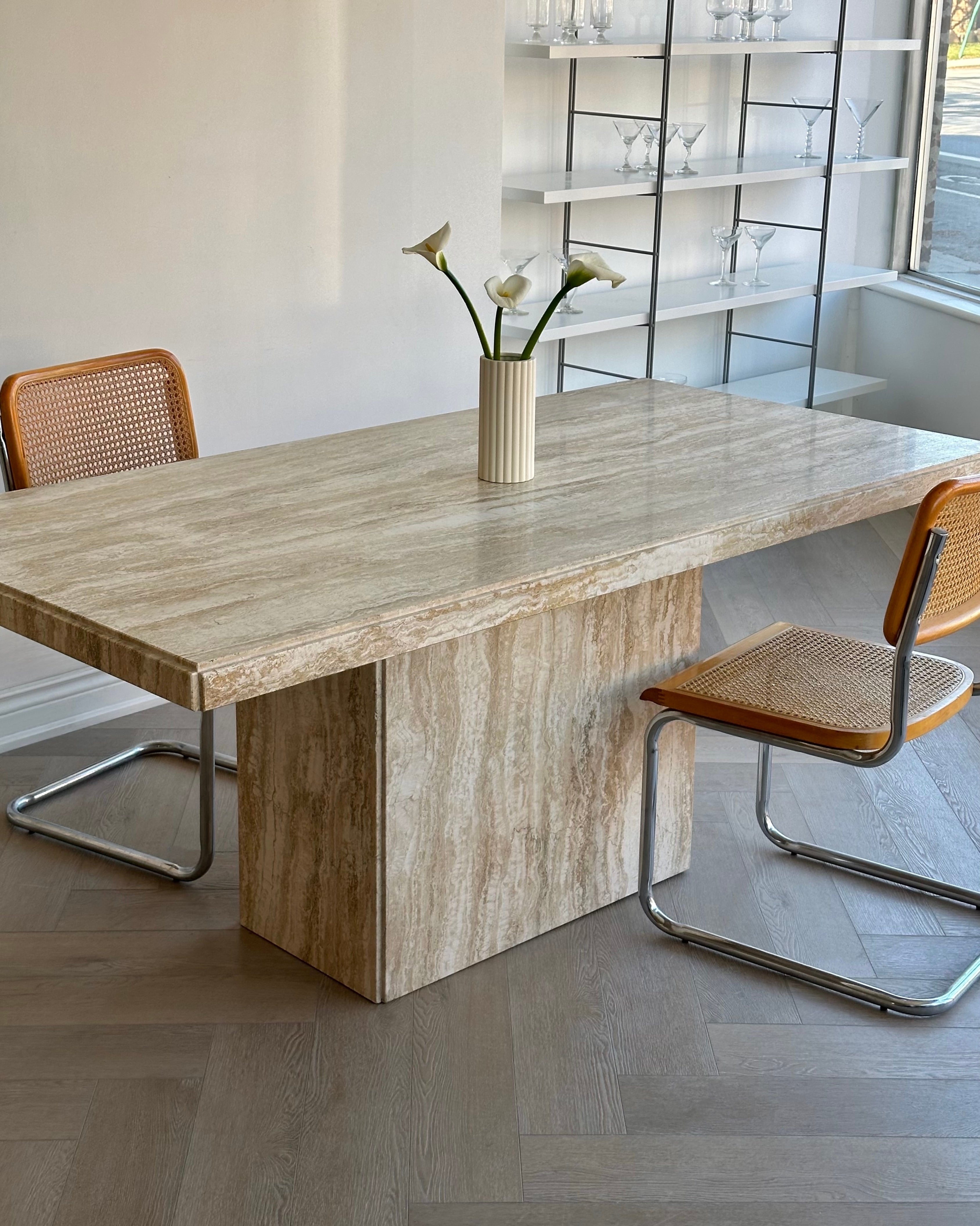 Polished 79” Travertine Bianco Dining Table