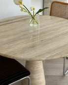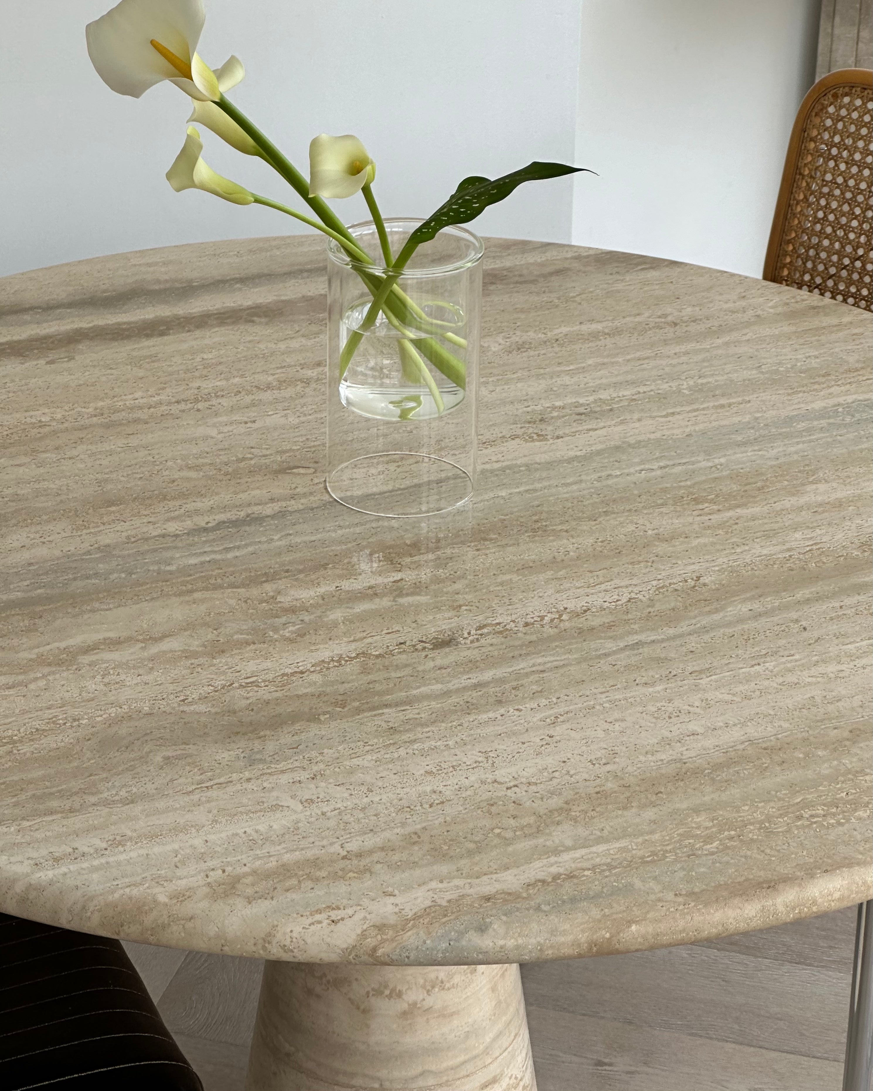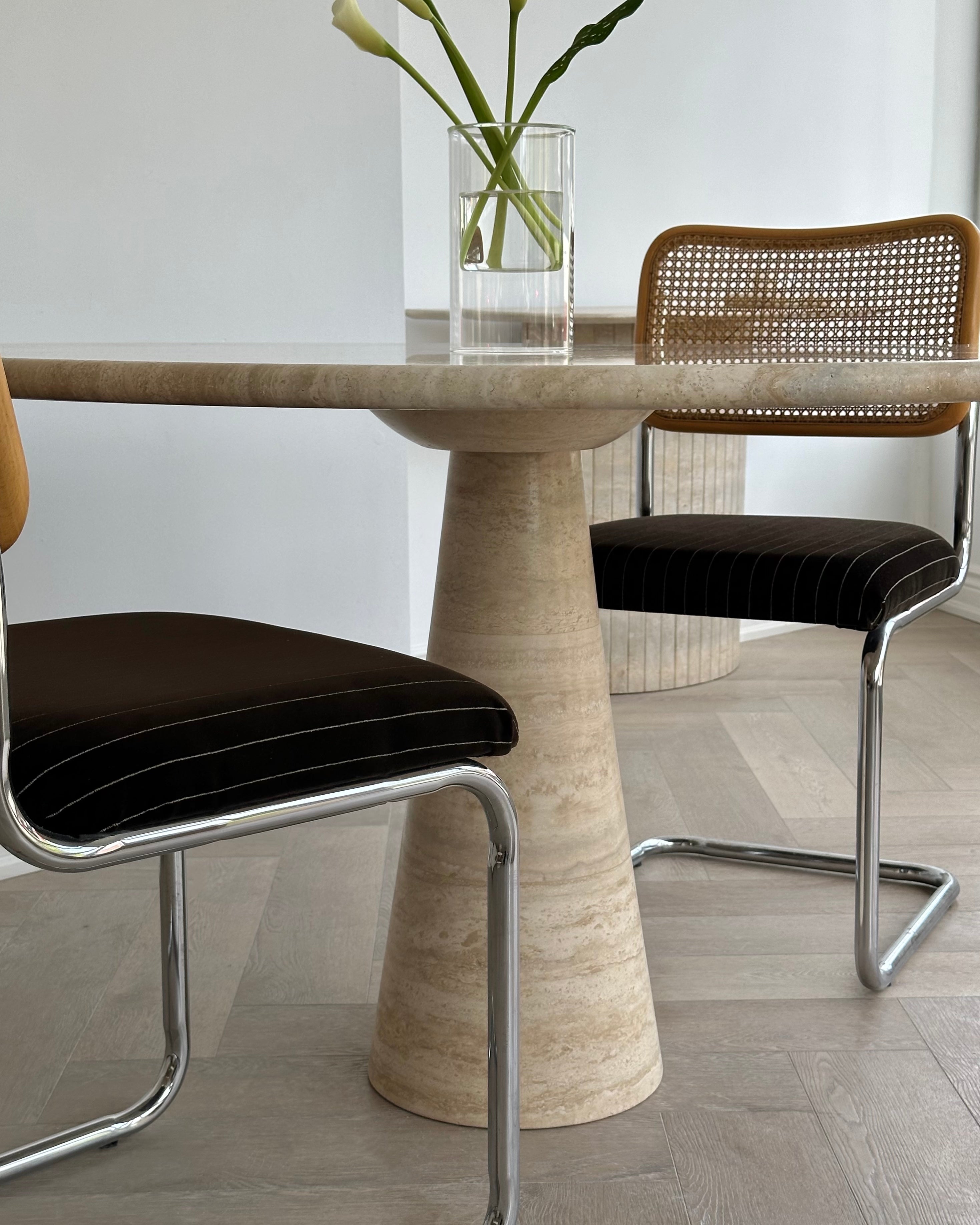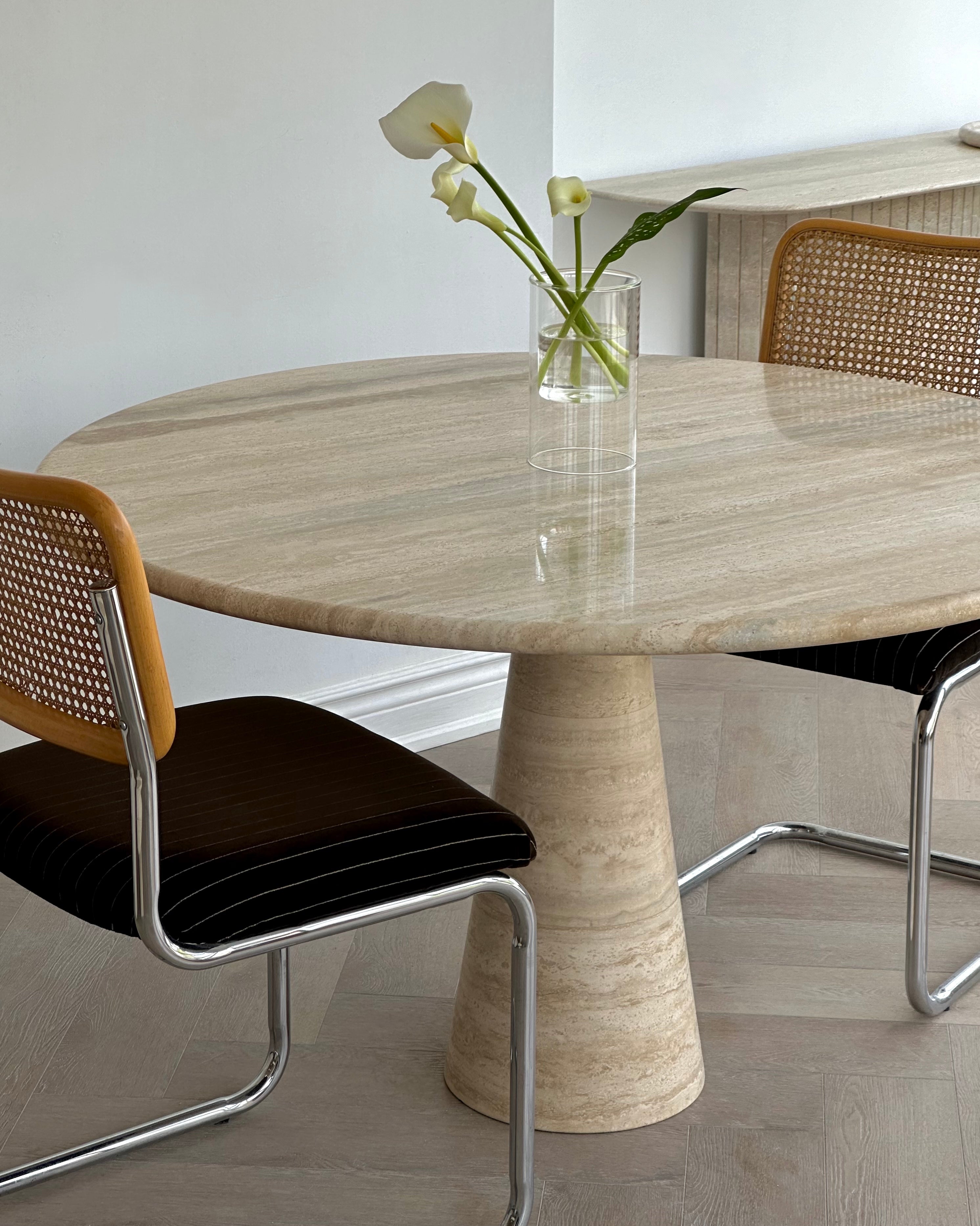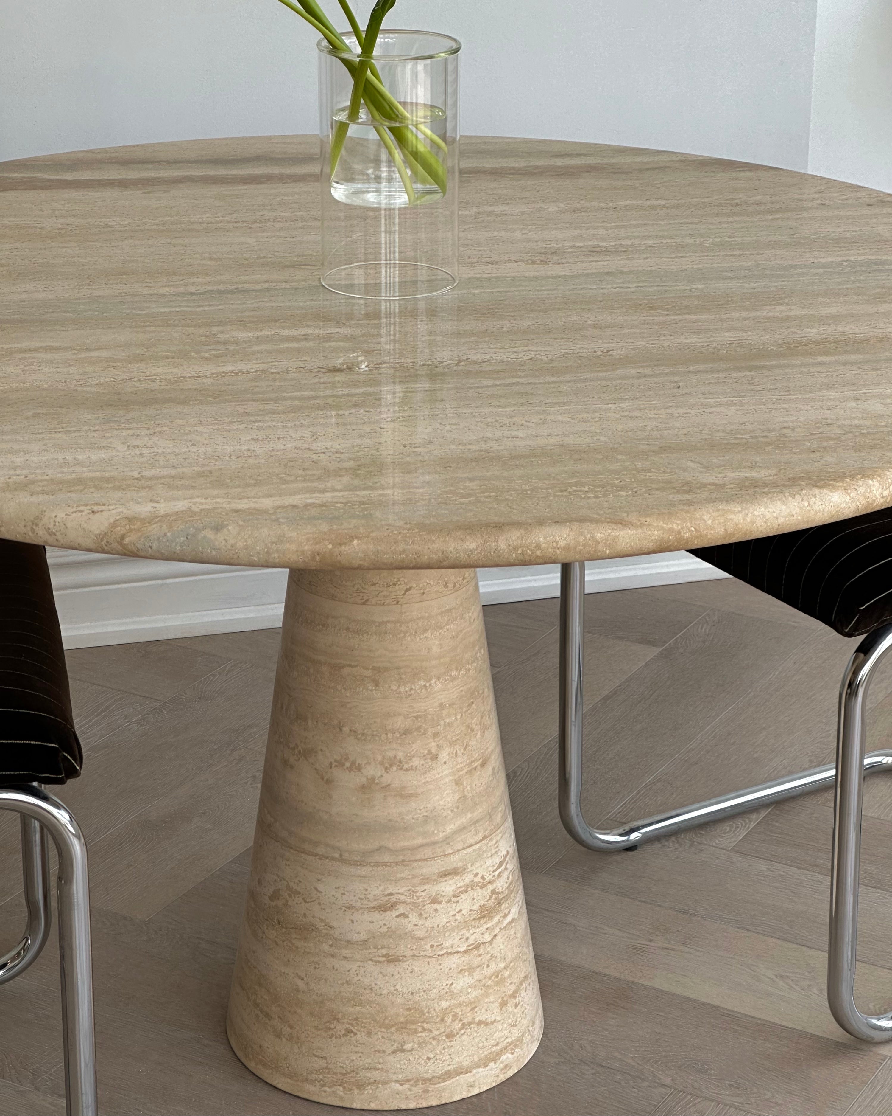 Polished travertine dining table attributed to Angelo Mangiarotti, 1970s