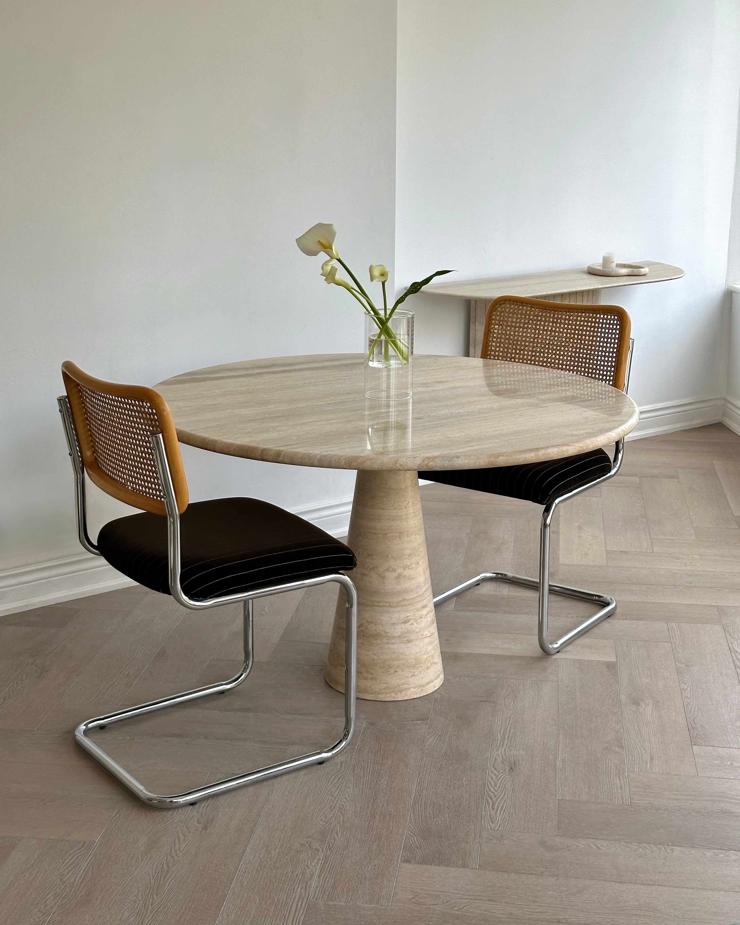 This heirloom piece is yet another rare Angelo Mangiarotti piece to make its way to us. Timeless and beautiful design in a classic travertine. Pristine vintage condition. Surface has been professionally refinished, polished and sealed.