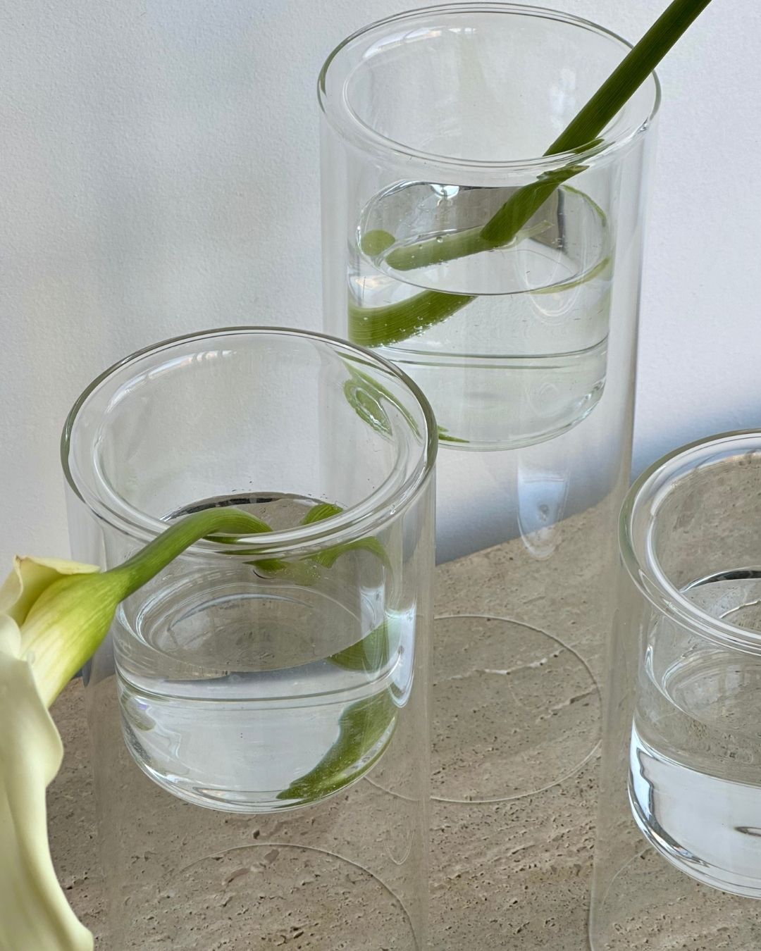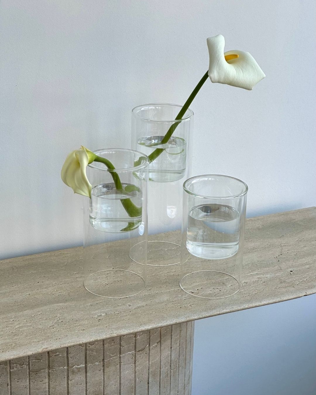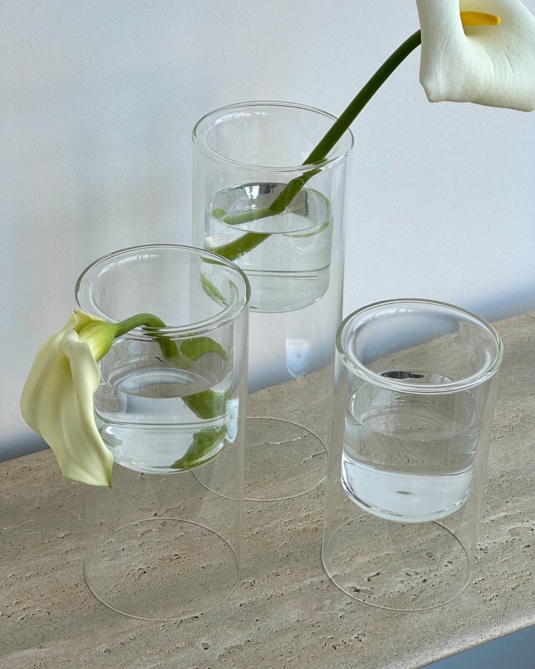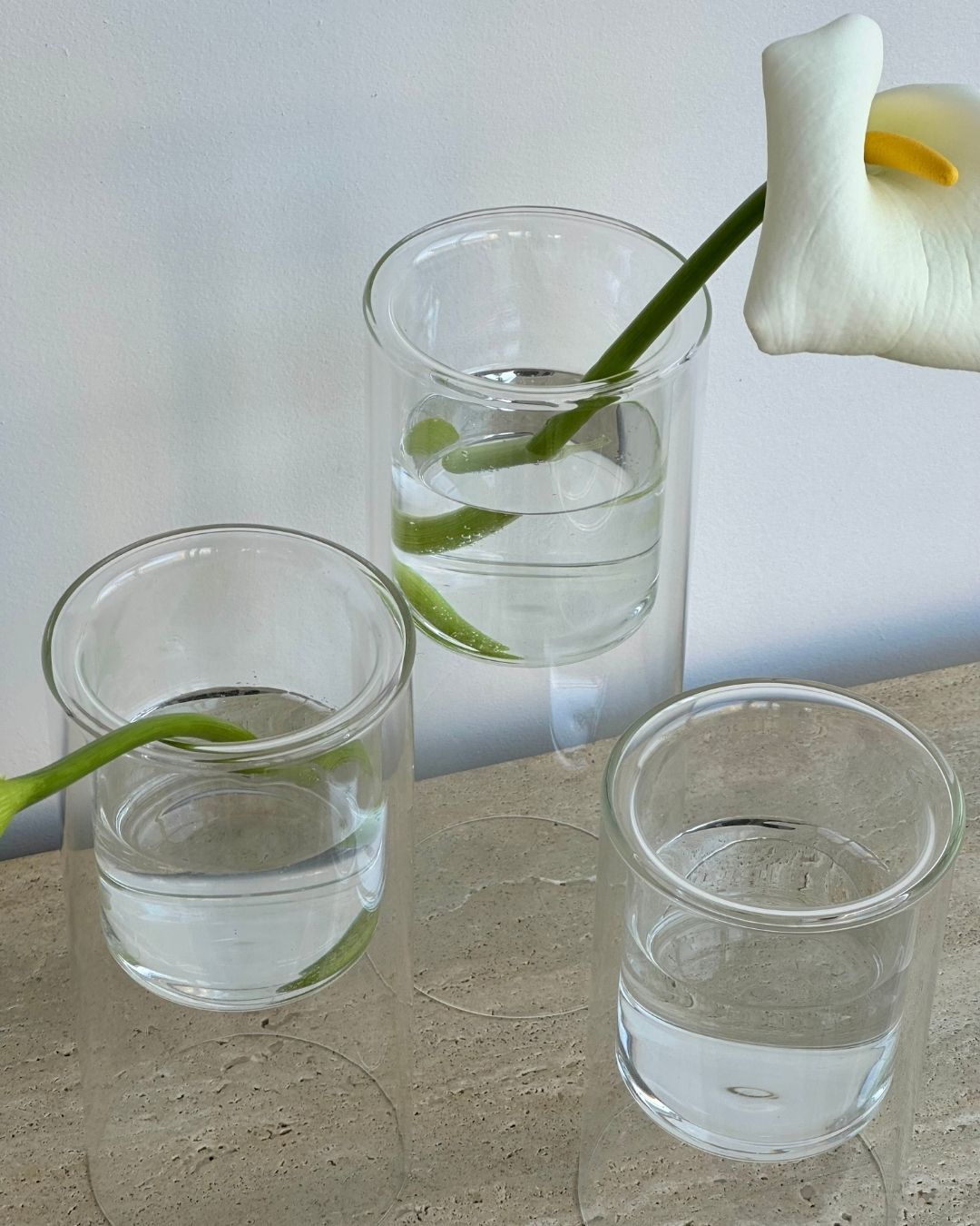 Set of 3 "floating" glass votives, suitable for florals or candles. Great vintage condition with little to no wear. Sold as a trio.