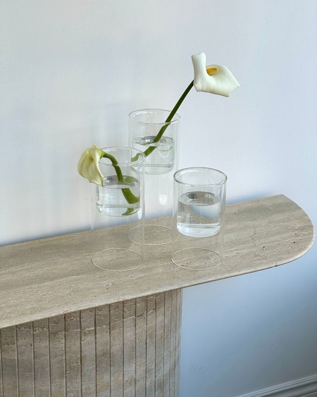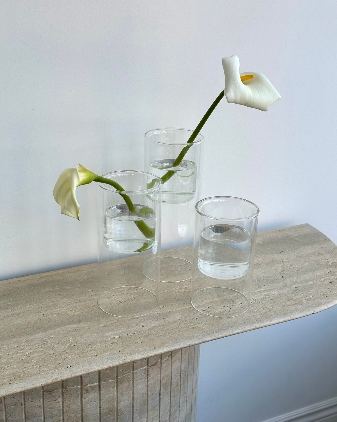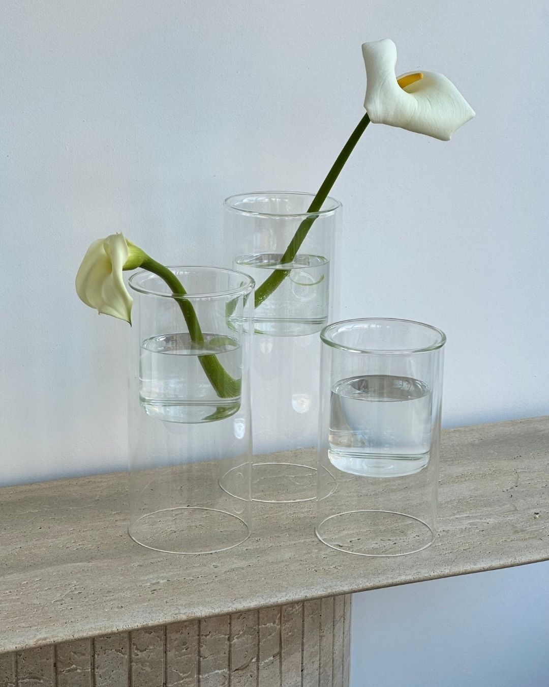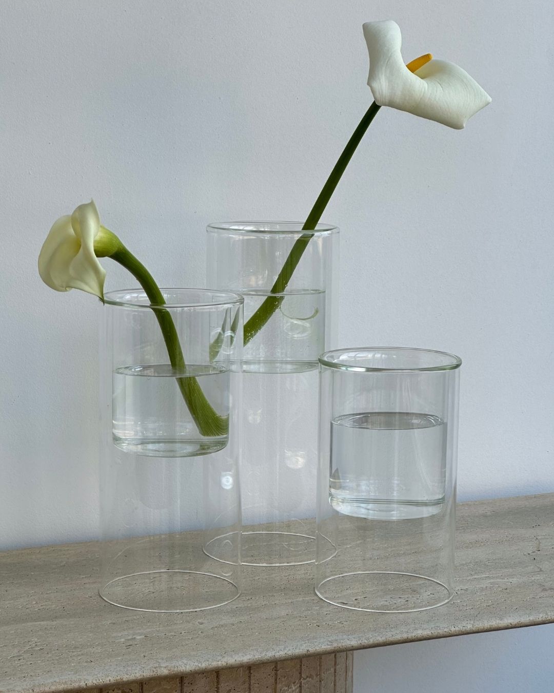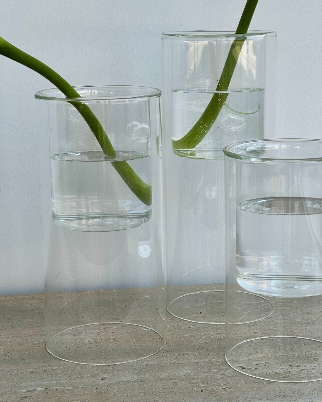 Set of 3 "floating" glass votives, suitable for florals or candles. Great vintage condition with little to no wear. Sold as a trio.