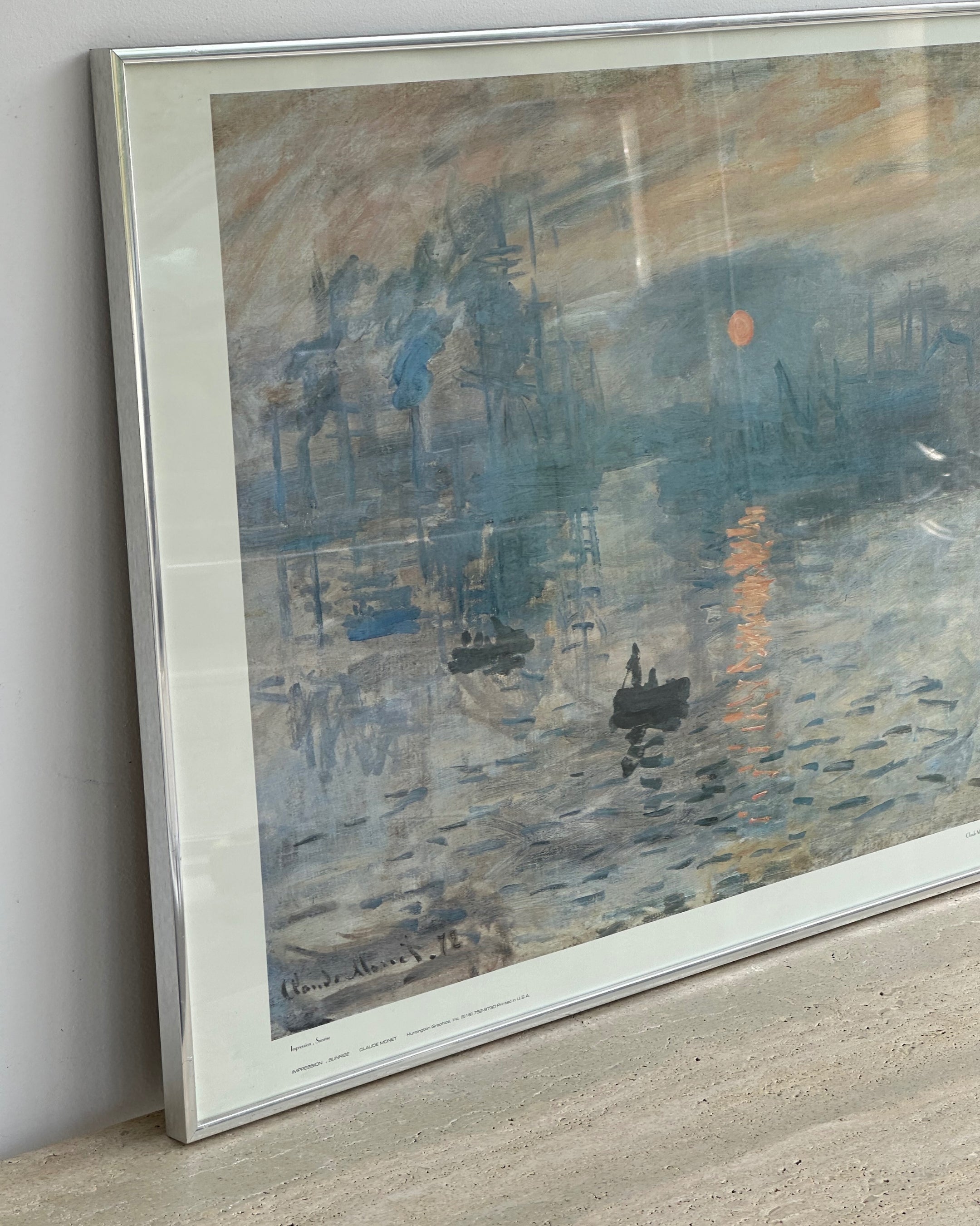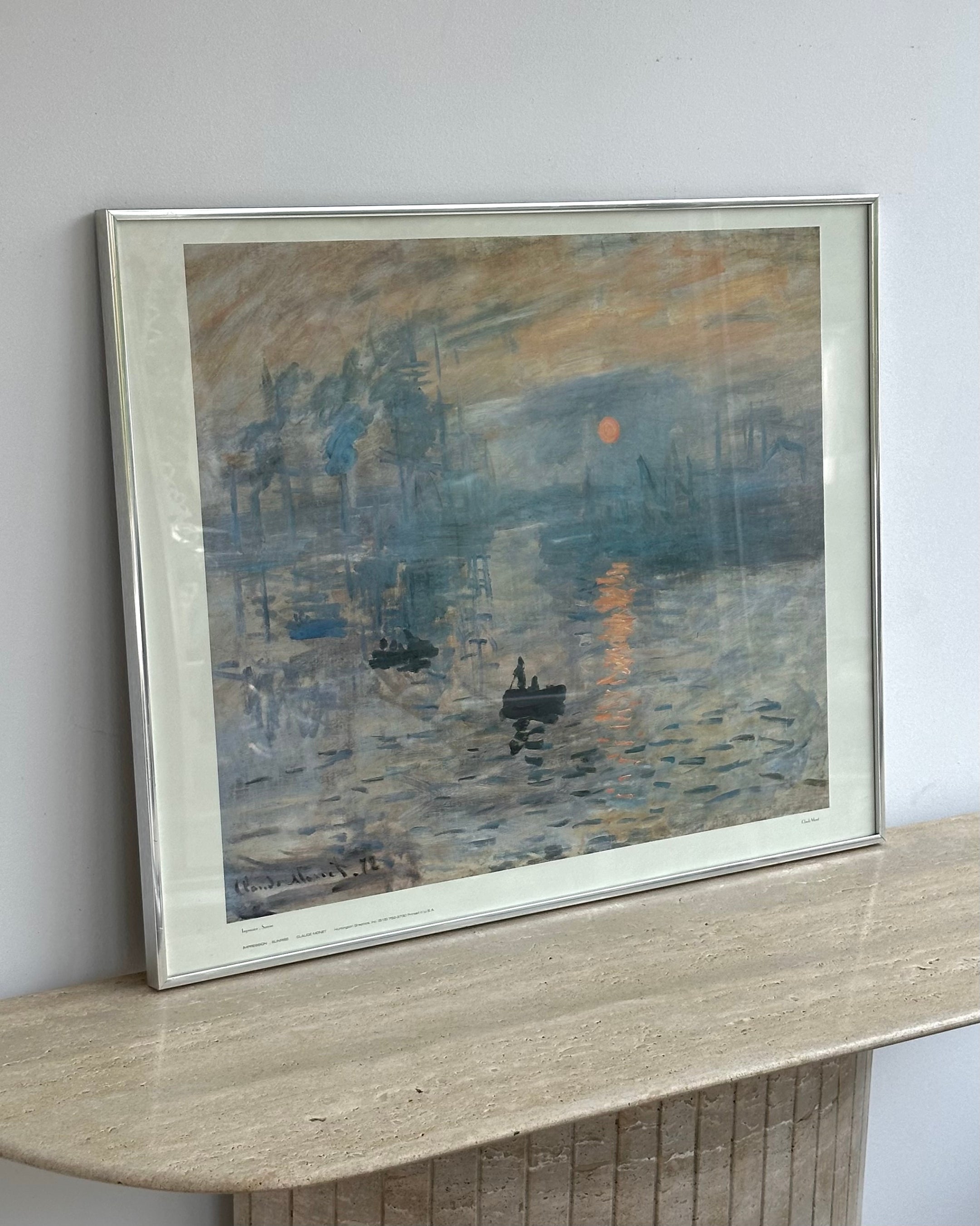 Brushed chrome framed Monet print; Impression, Sunrise in excellent vintage condition. Little to no wear. Local delivery or pick-up only due to glass insert.