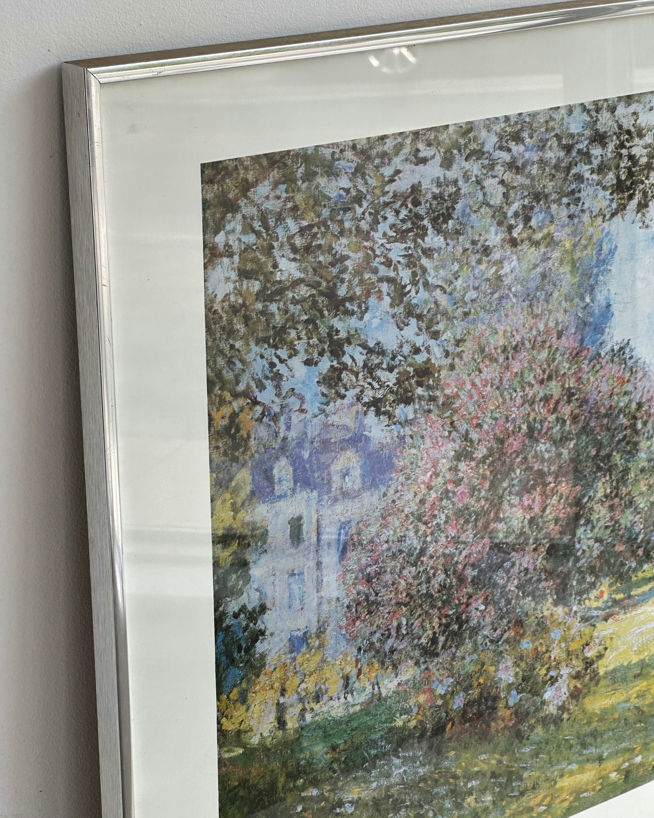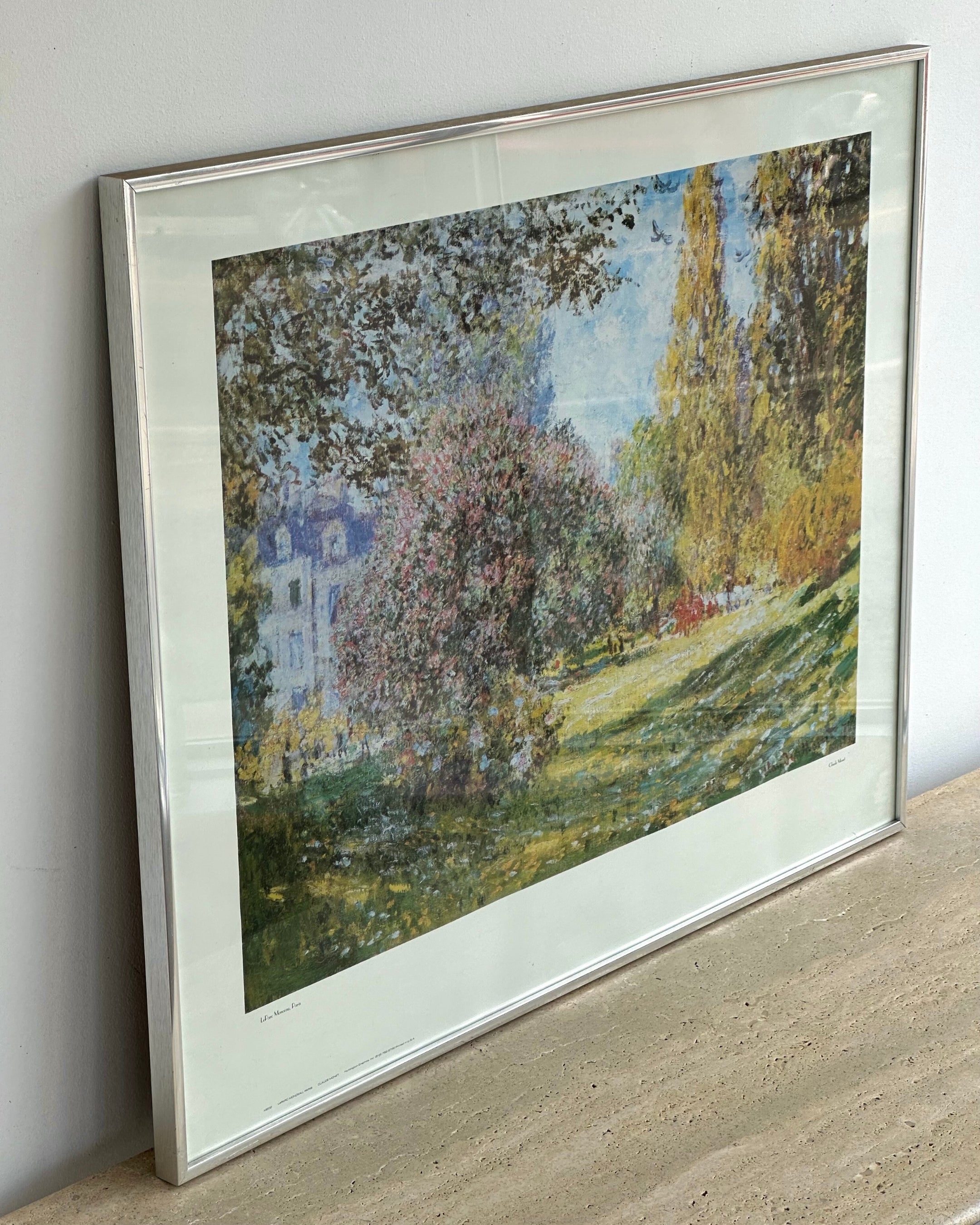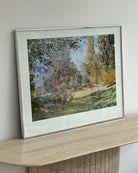 Brushed chrome framed Monet print; Parc Monceau in excellent vintage condition. Little to no wear. Local delivery or pick-up only due to glass insert.