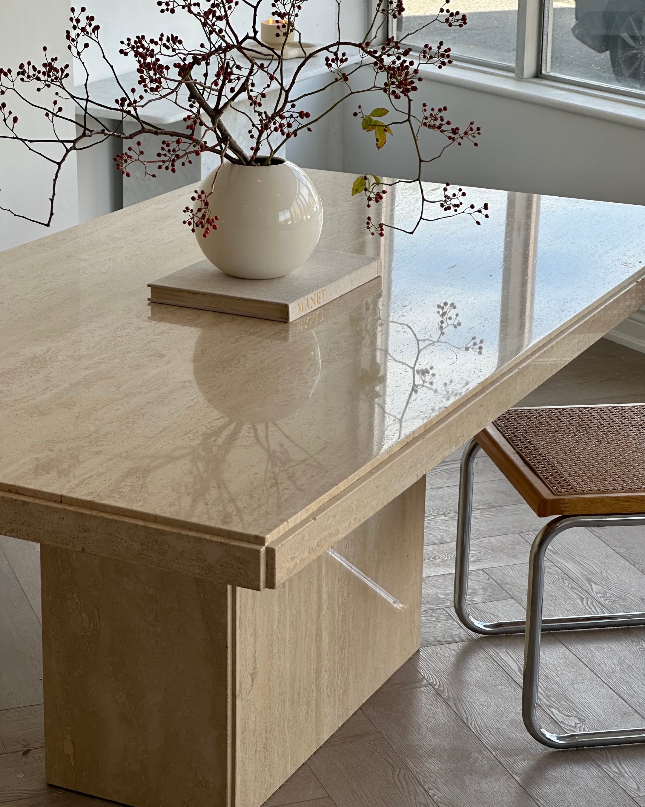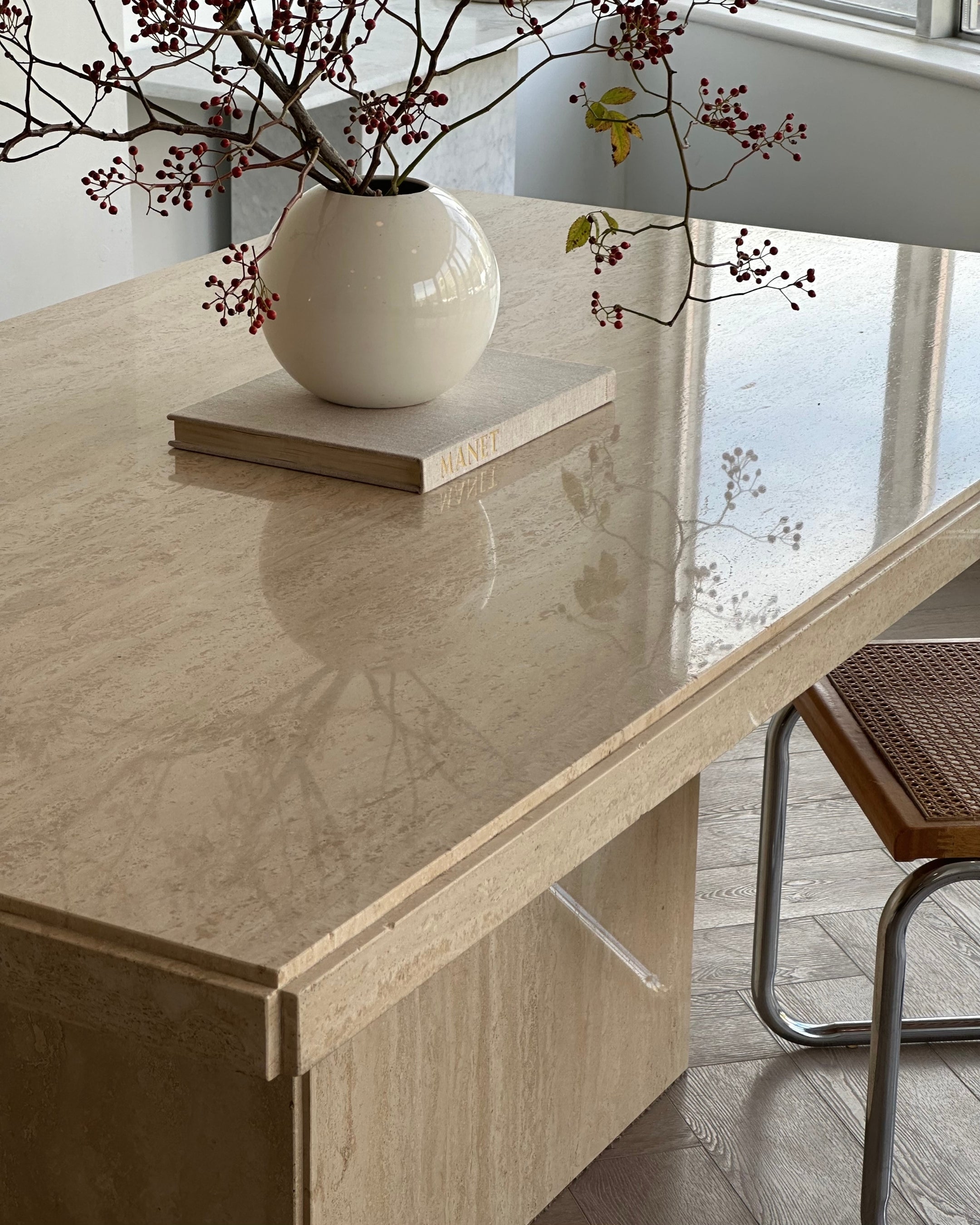 Polished 73” Travertine Dining Table