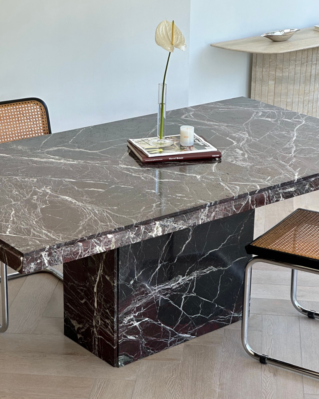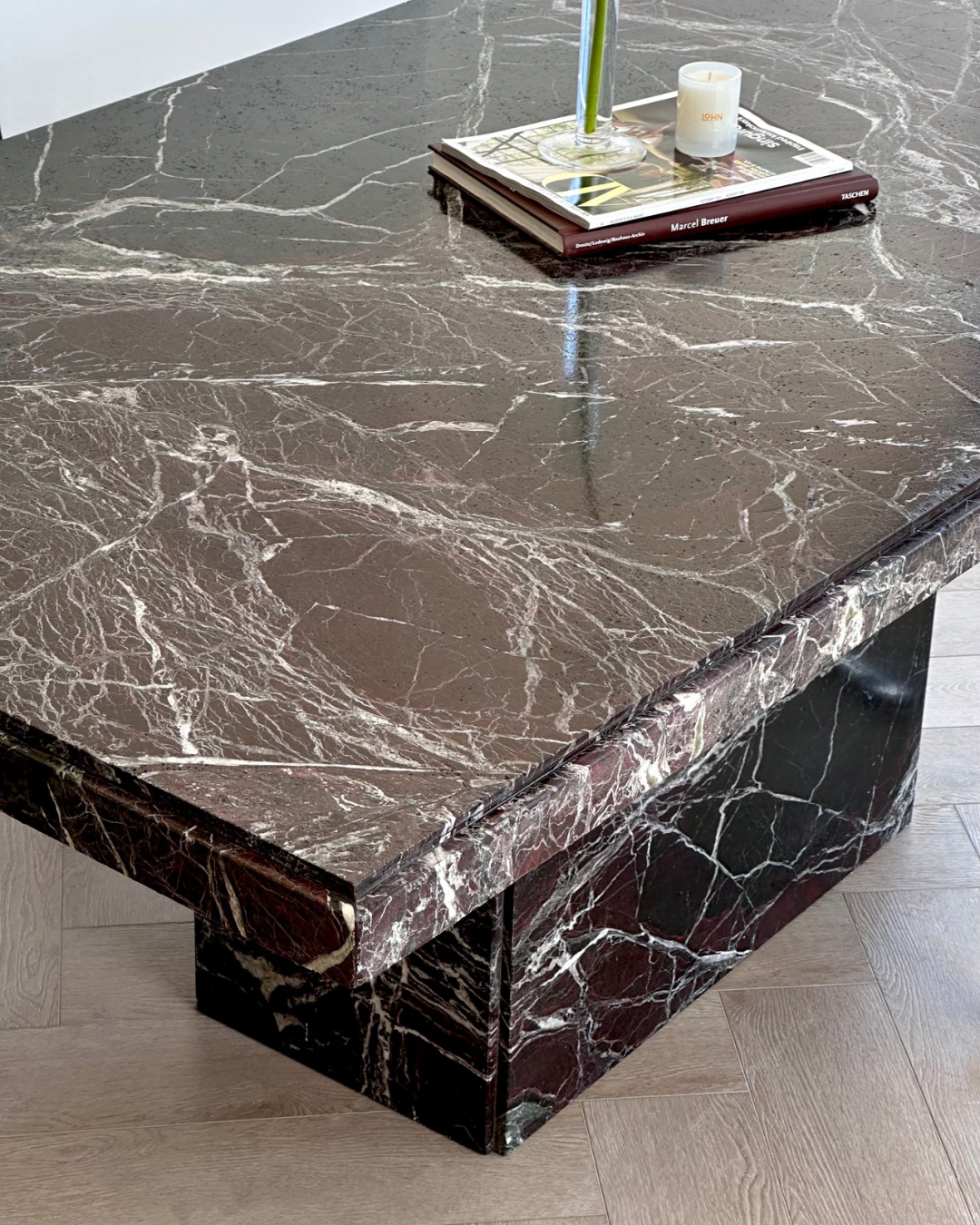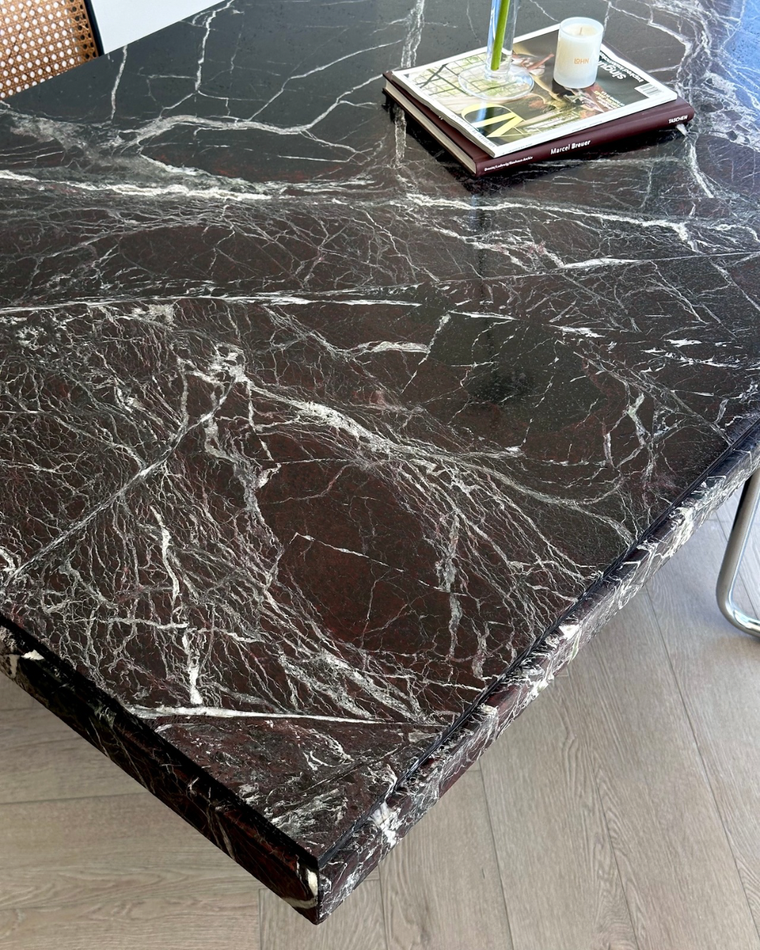Rosso Levanto beveled-edge marble dining table in excellent vintage condition.