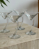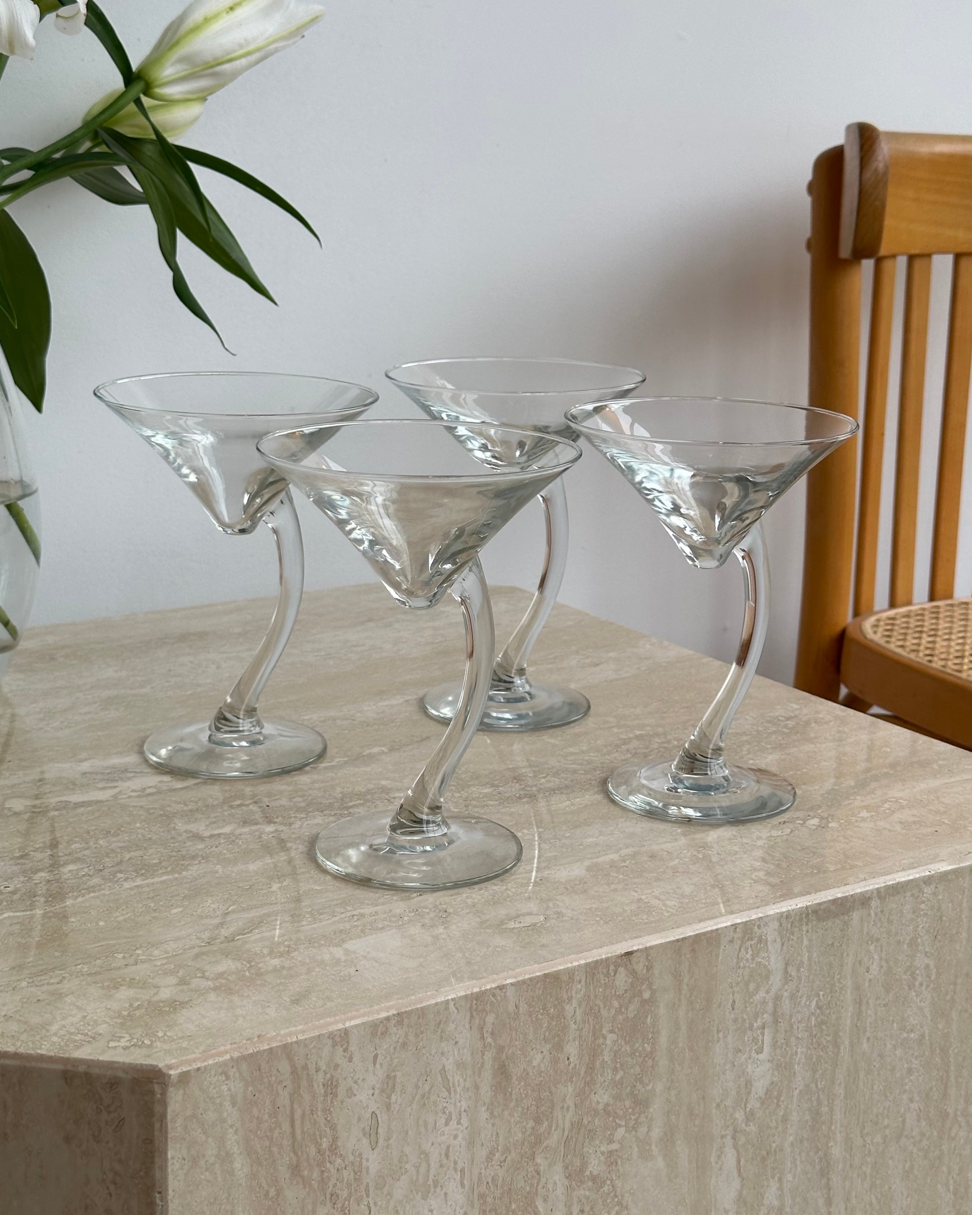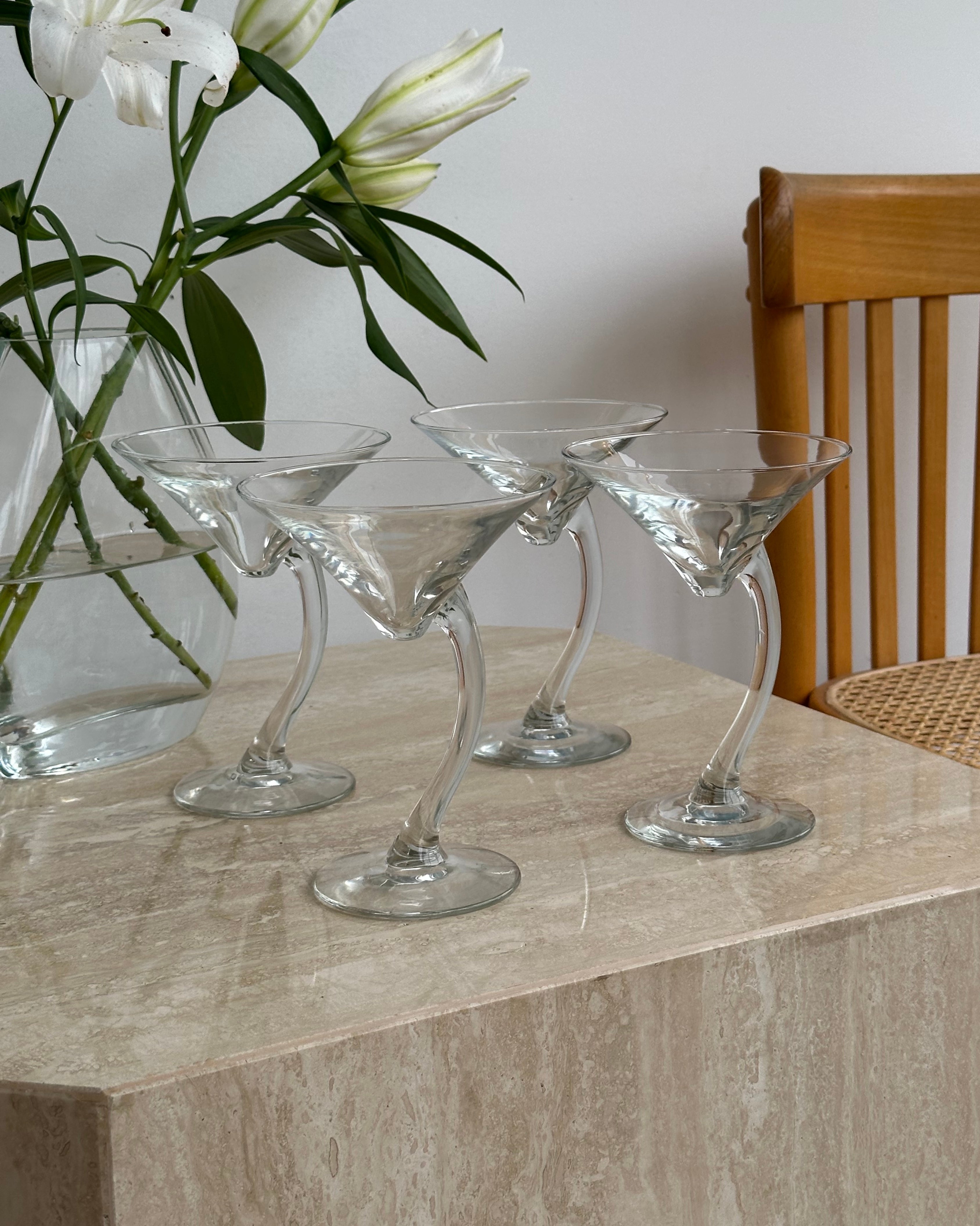 Standard sized slanted Libbey martini glasses. Set of 4, however two sets are available. Elevate your next dinner party!