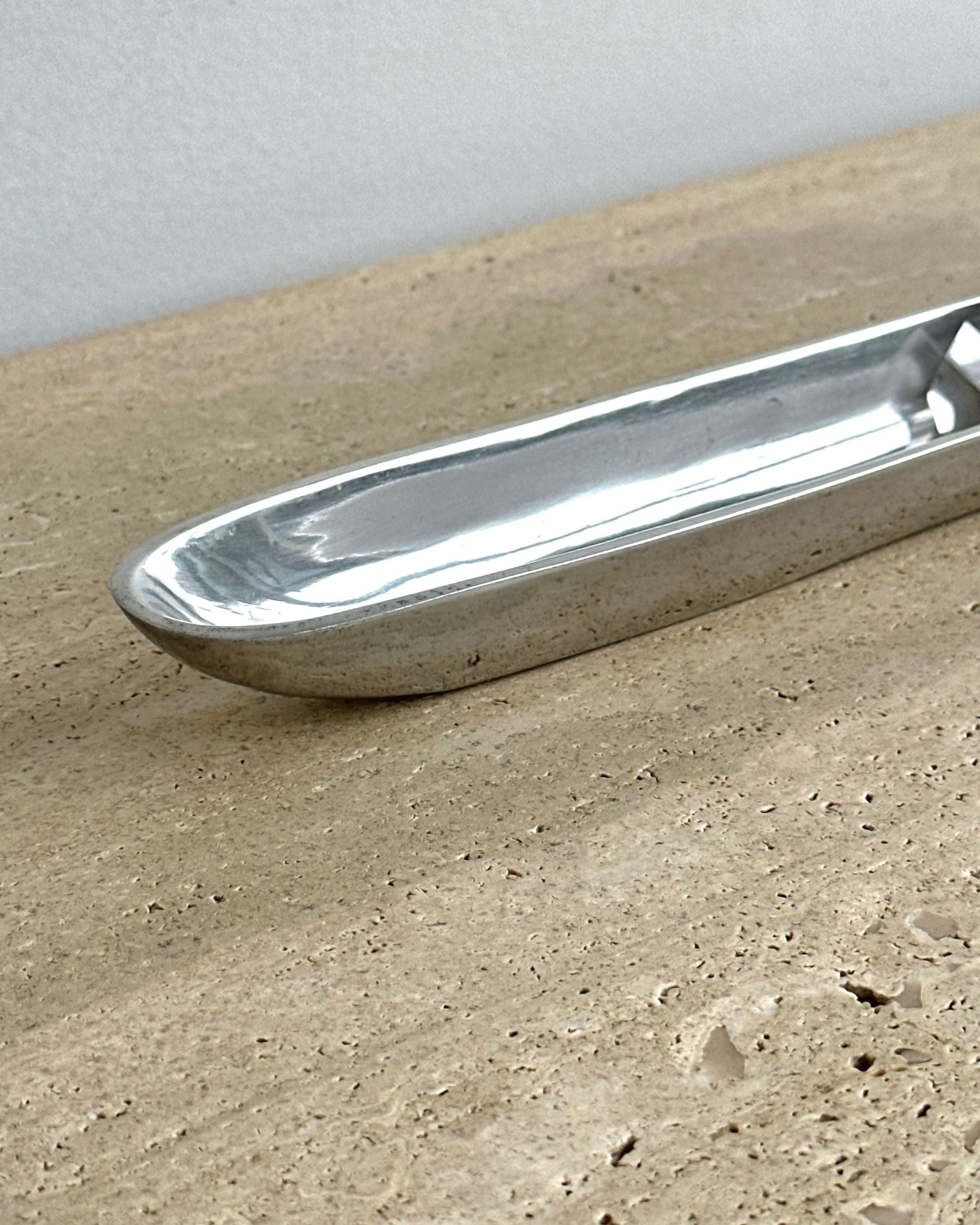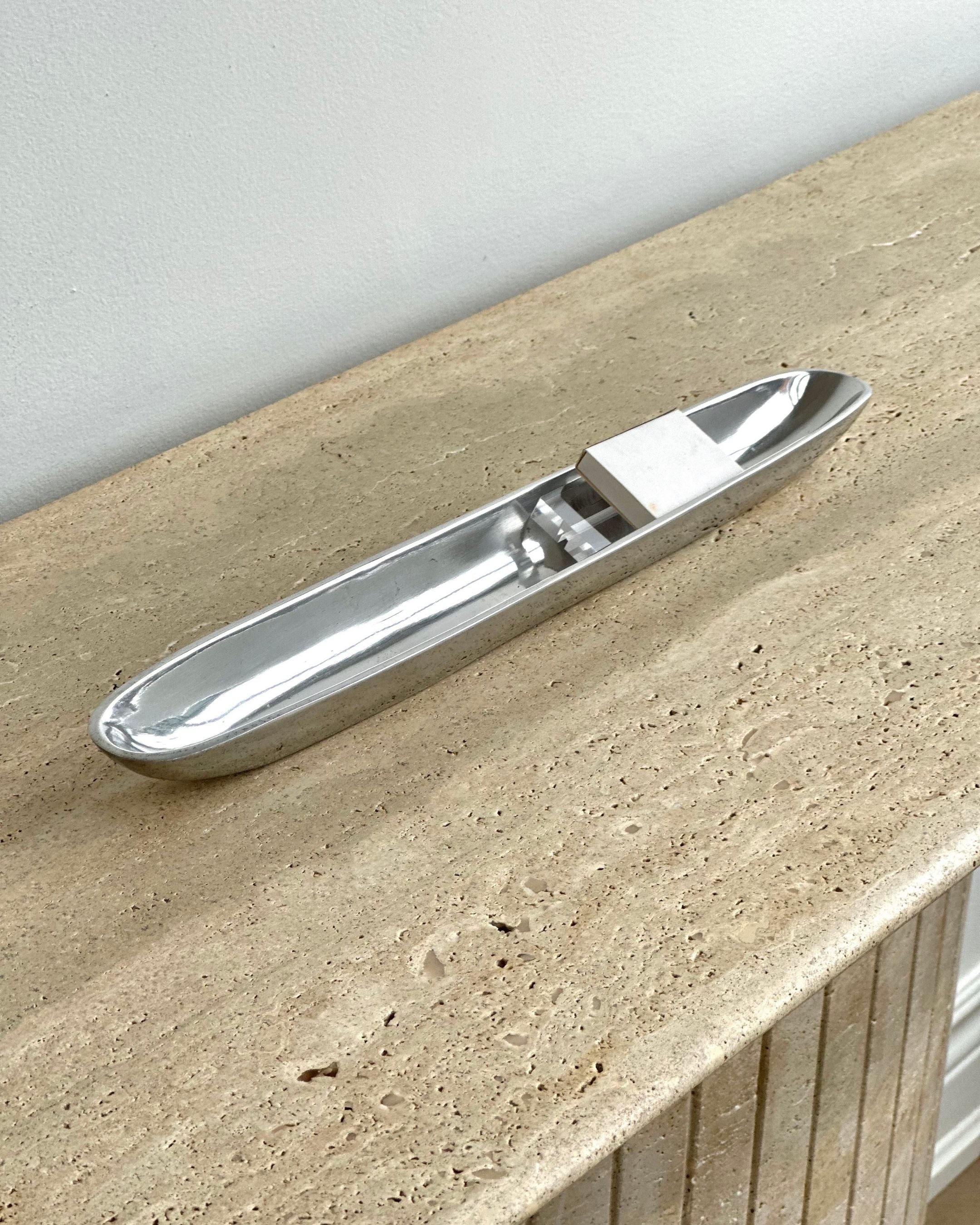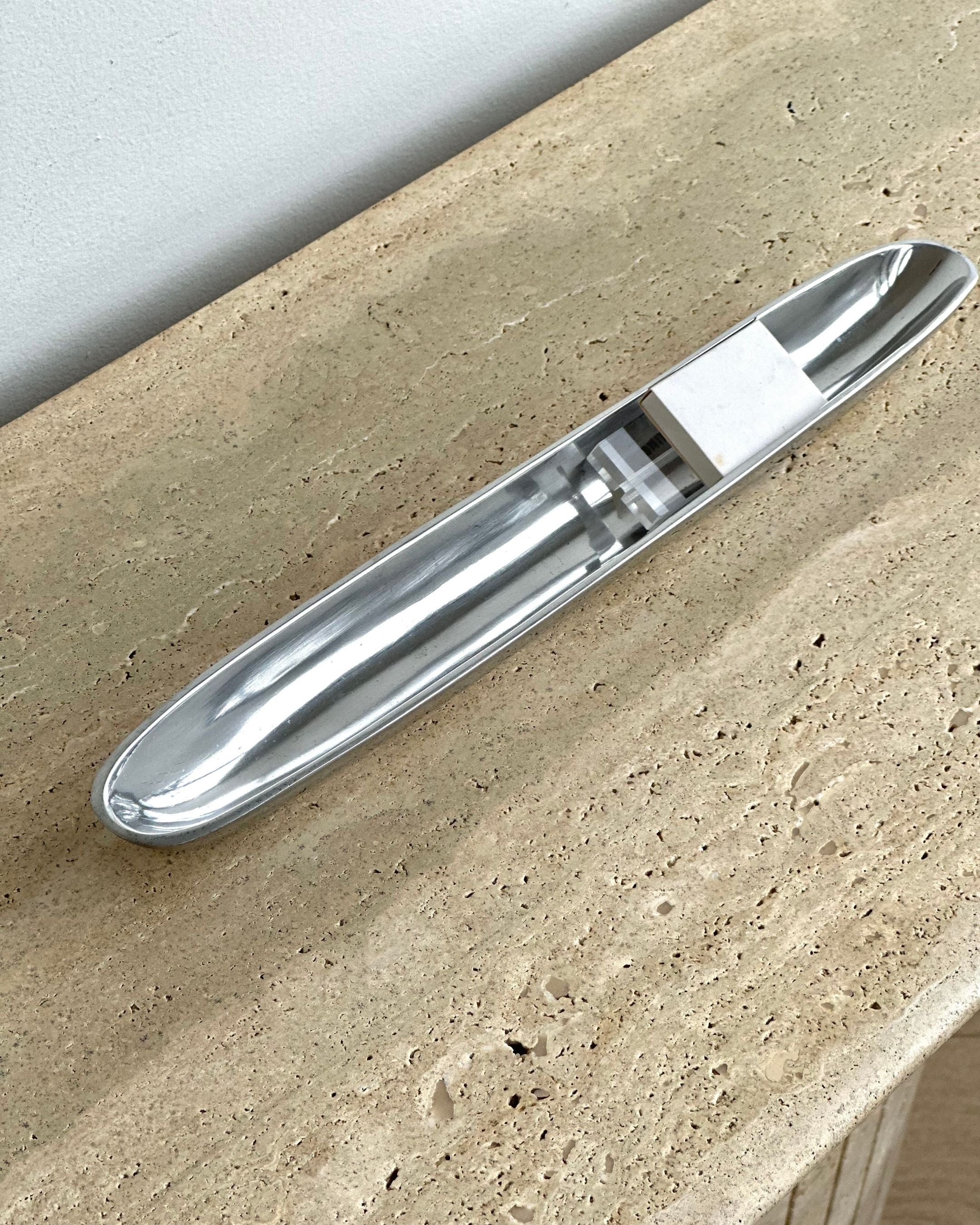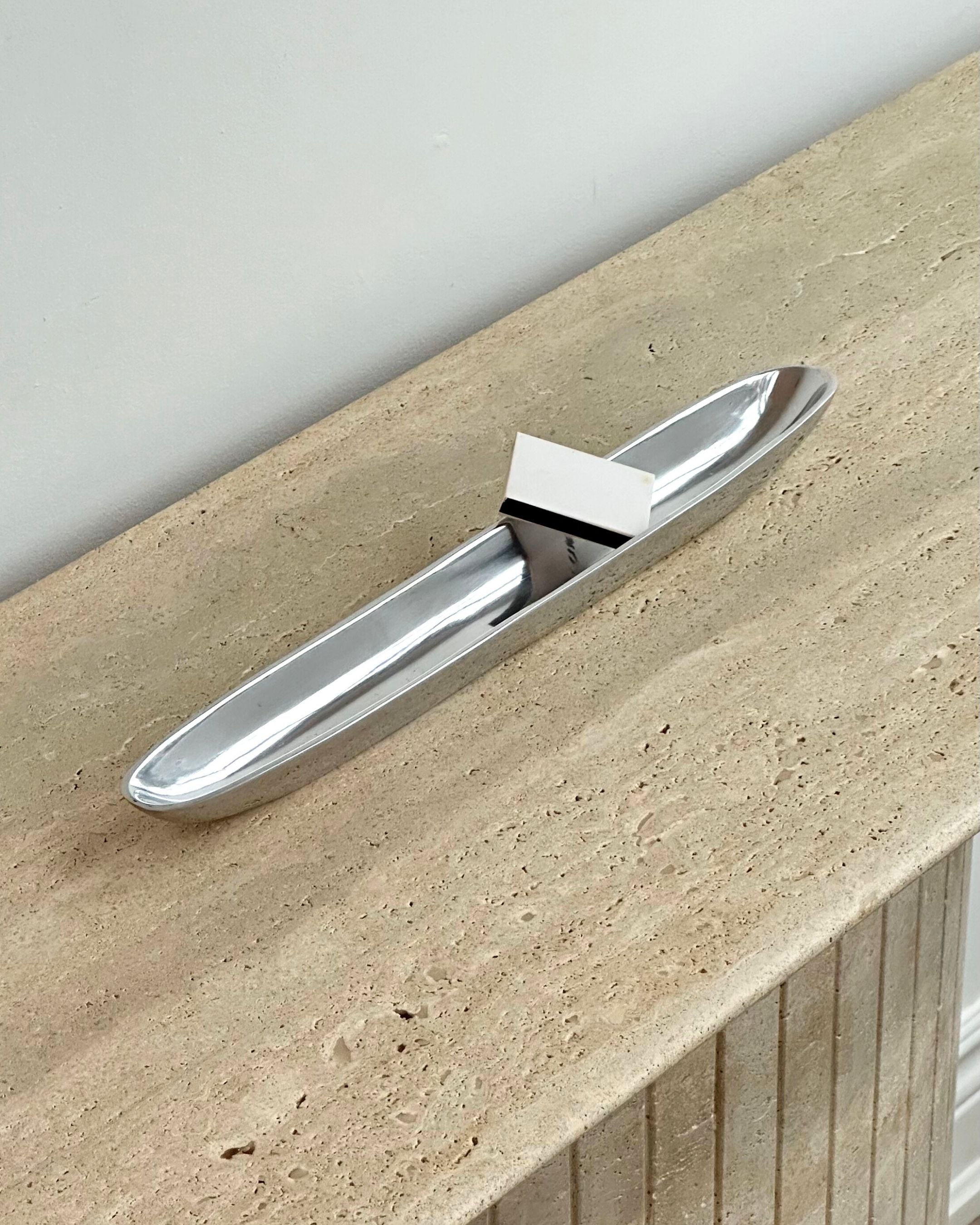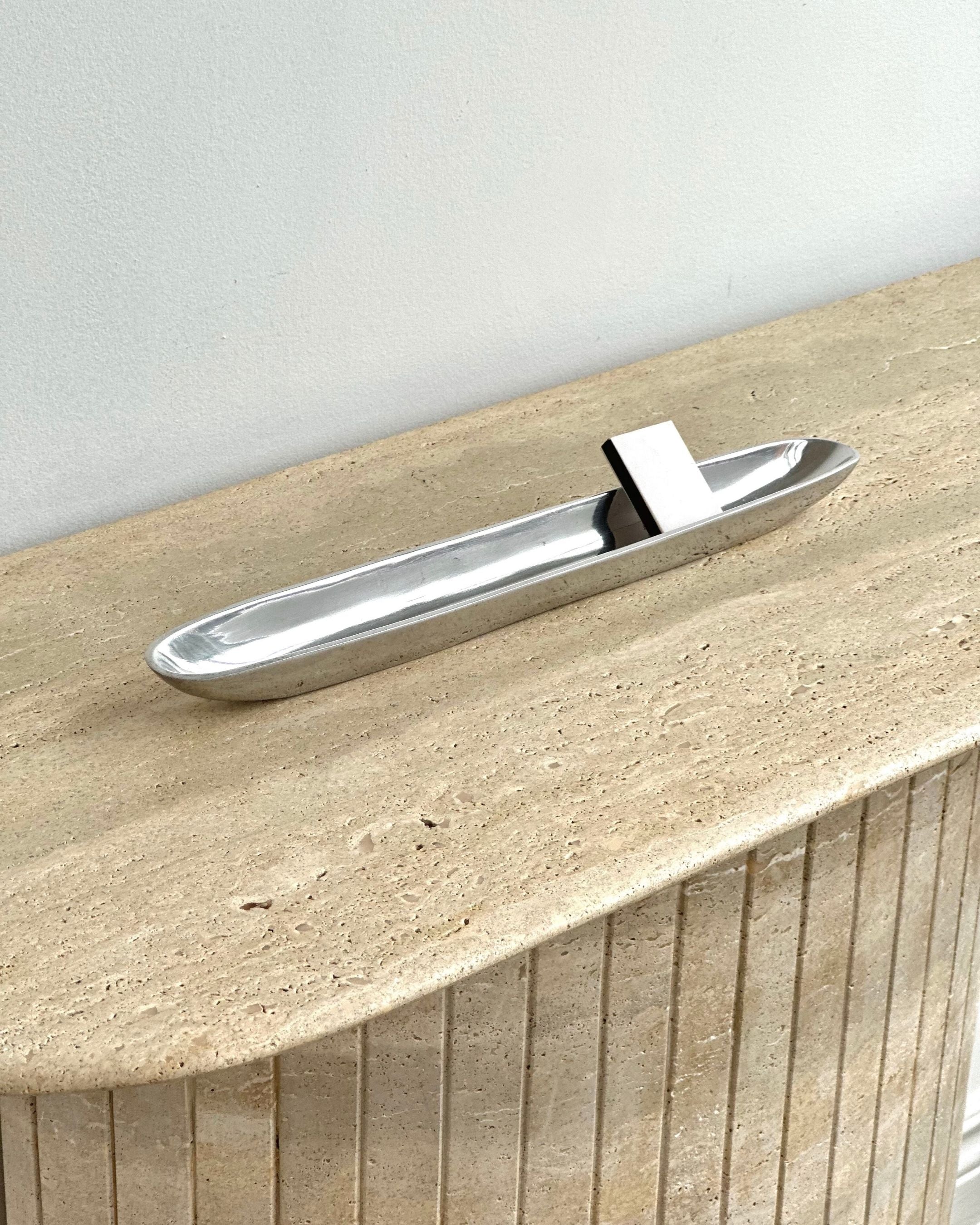 Skinny Decorative Chrome Dish in excellent vintage condition. Style on a console, credenza or coffee table with small decor inside like matchbooks, jewelry, etc.