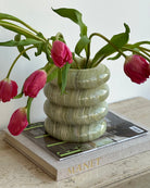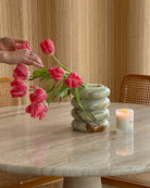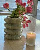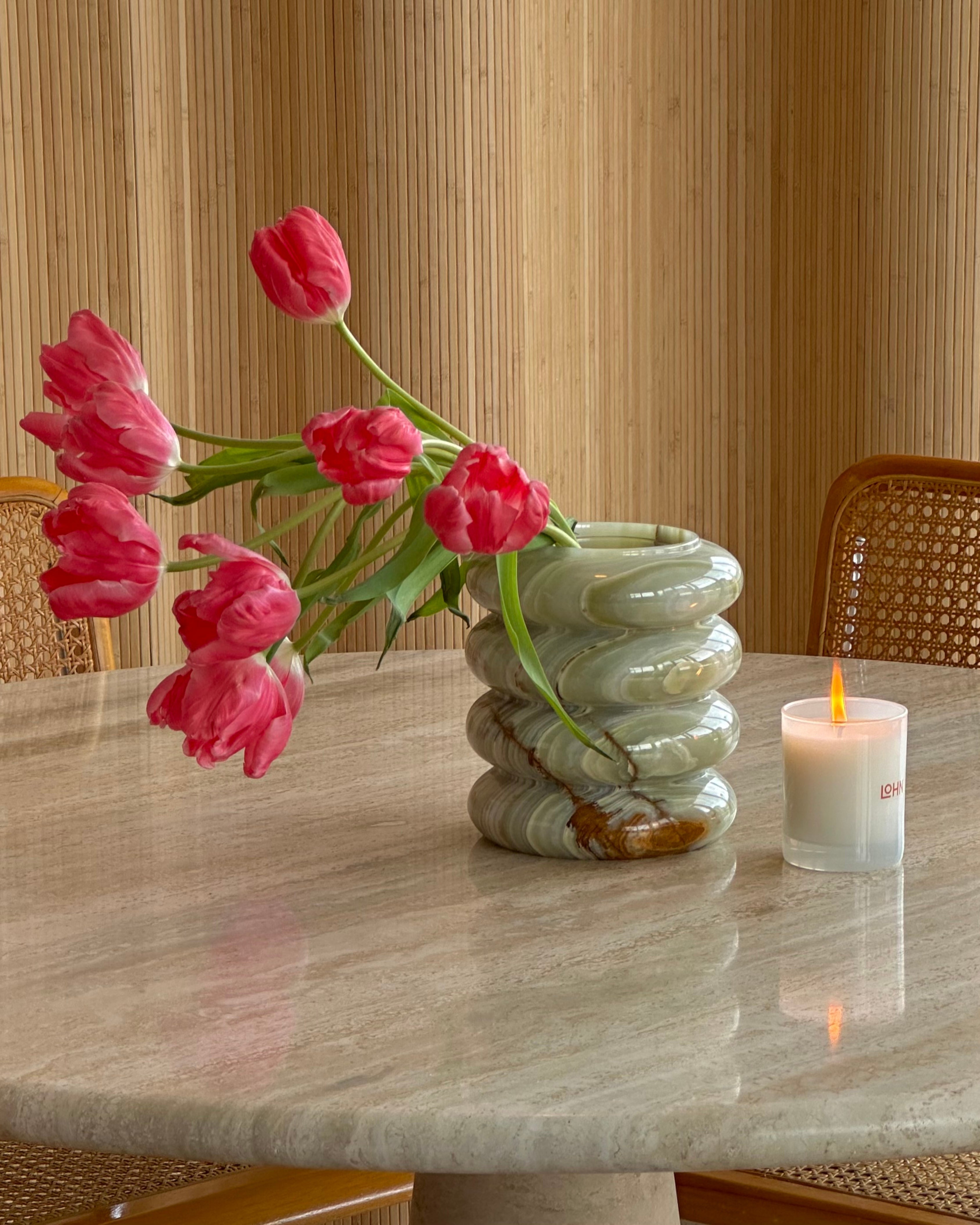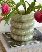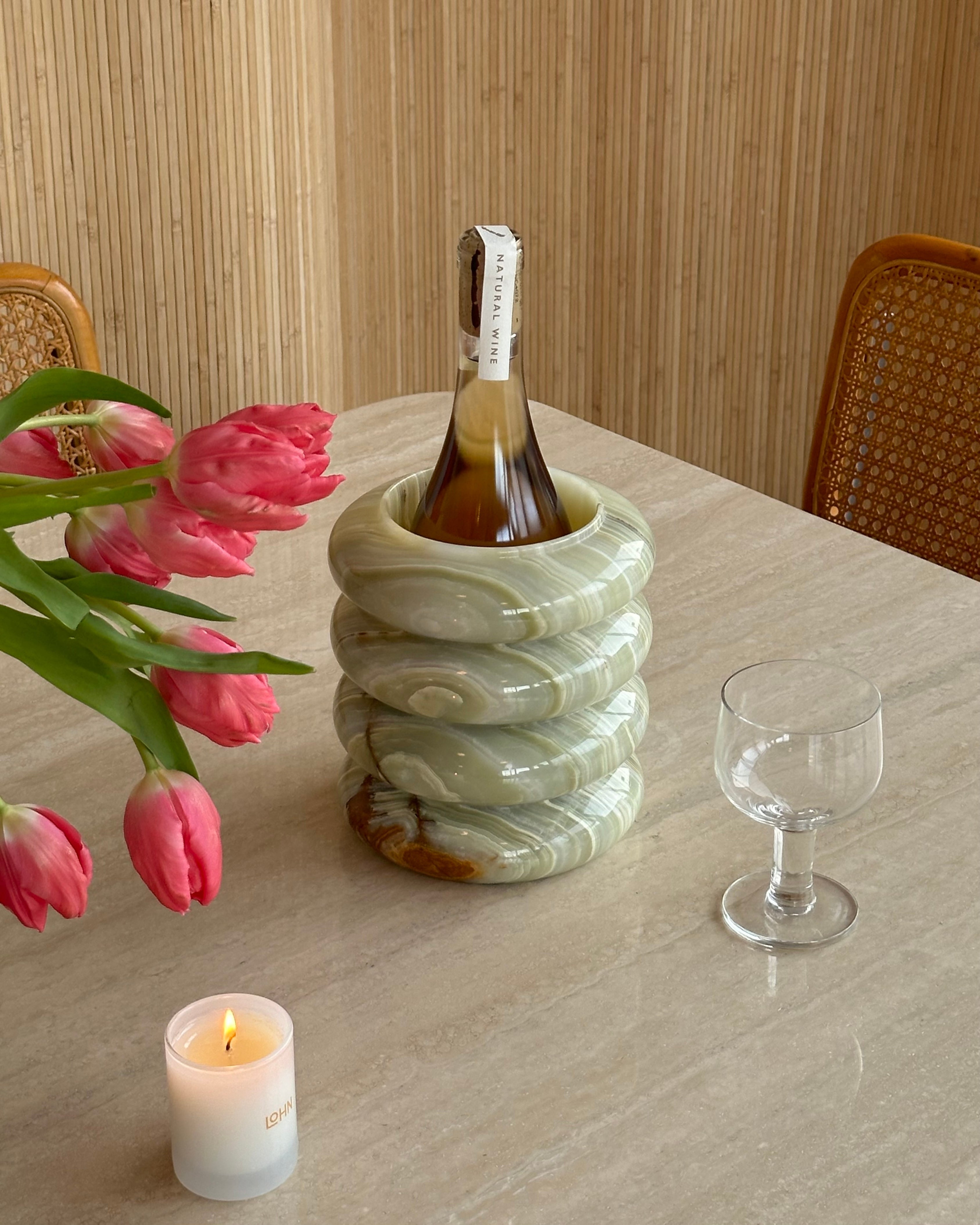 Introducing the Bubble Vessel, a piece from our in-house designed collection. Made from hand-carved and polished light Green Onyx. We designed this piece to serve multiple purposes; use it as a flower vase, utensil holder, or chill the vessel or top with ice for a wine and bottle chiller.