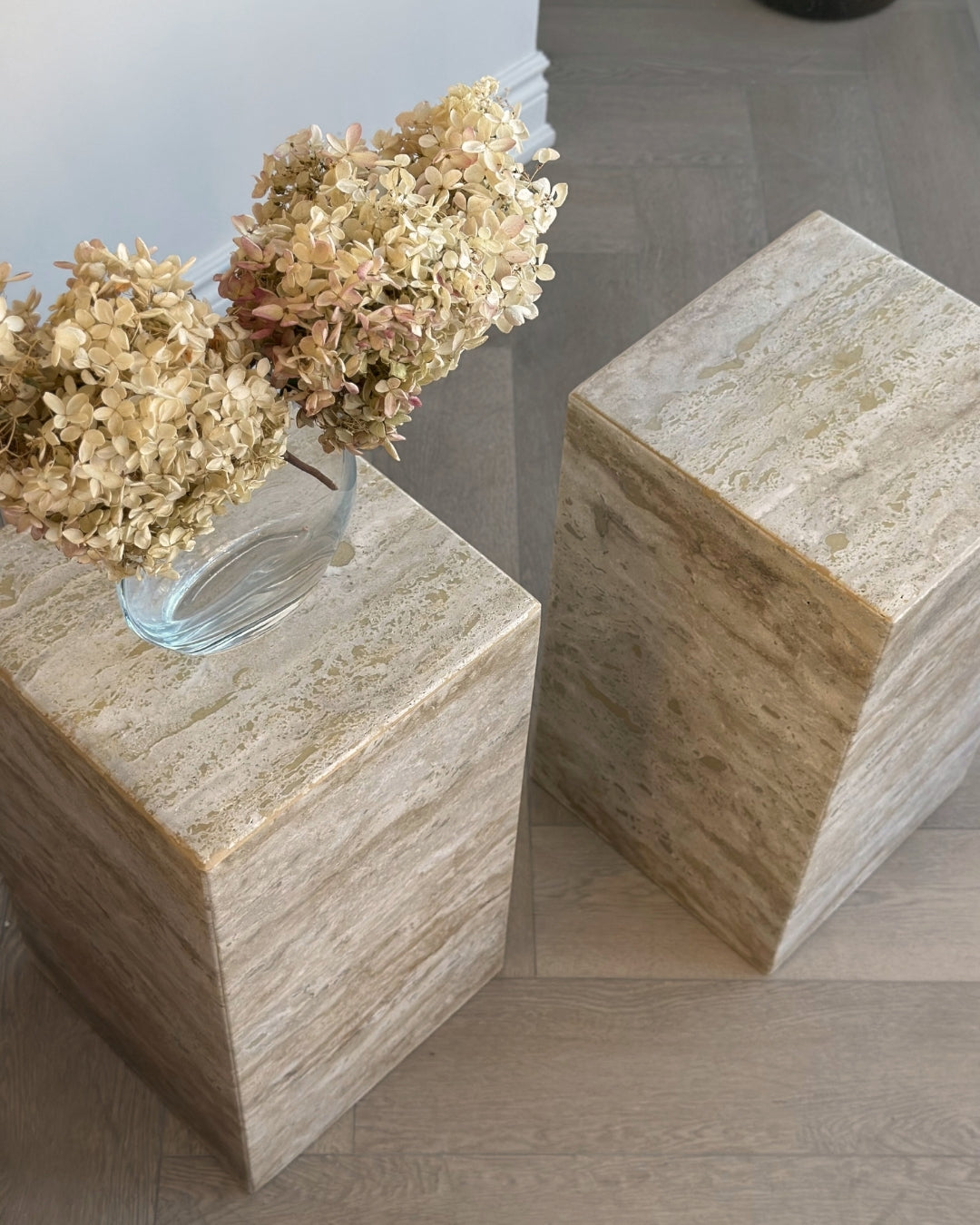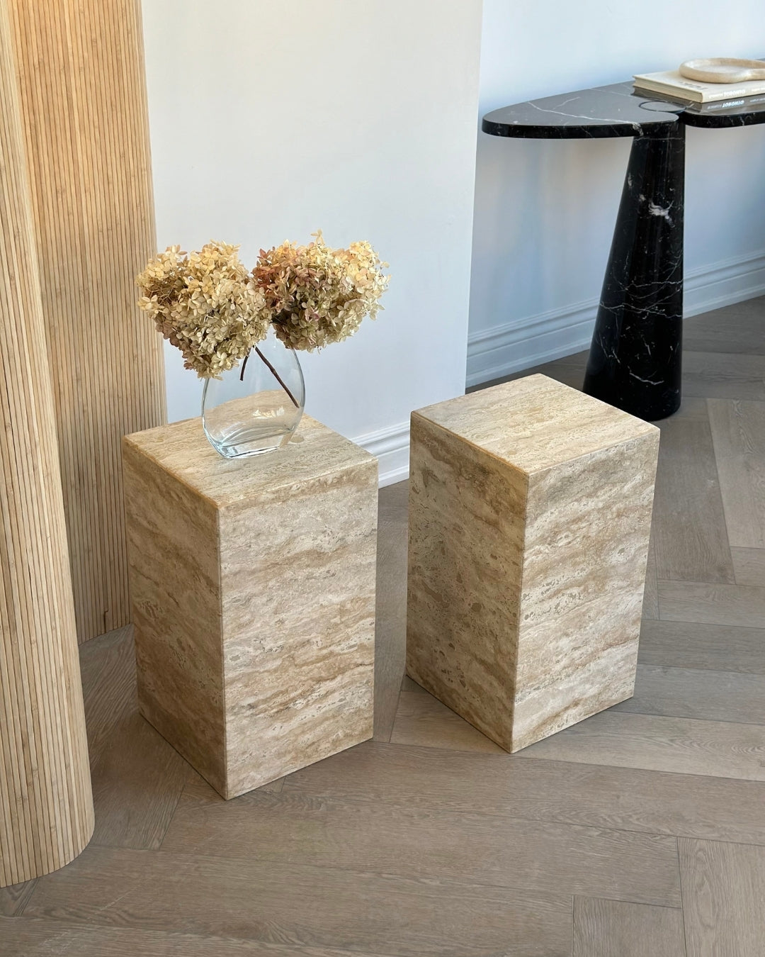 Introducing the Travertine Plinth. Crafted from hand selected deeper-toned Travertine brought to a high polish. Suitable as an end table for a sofa, accent chair or bedside.