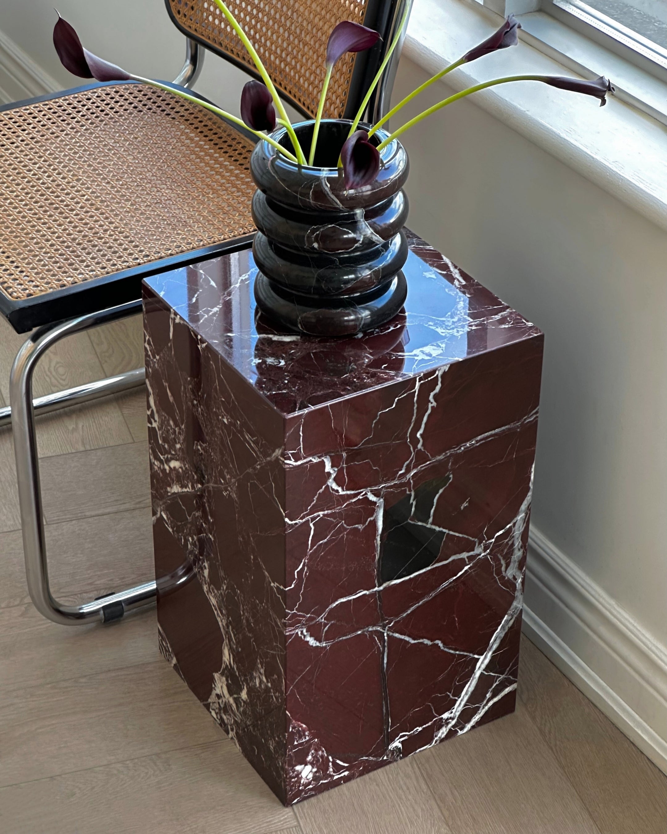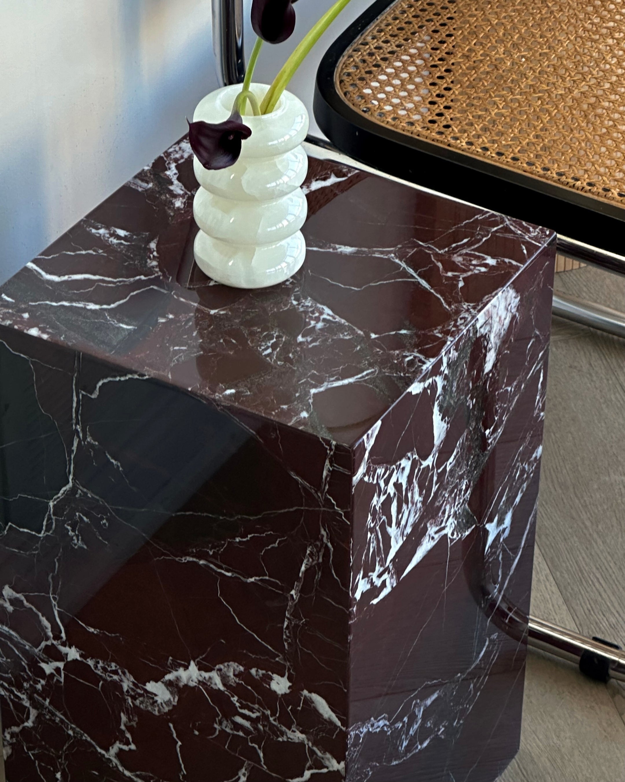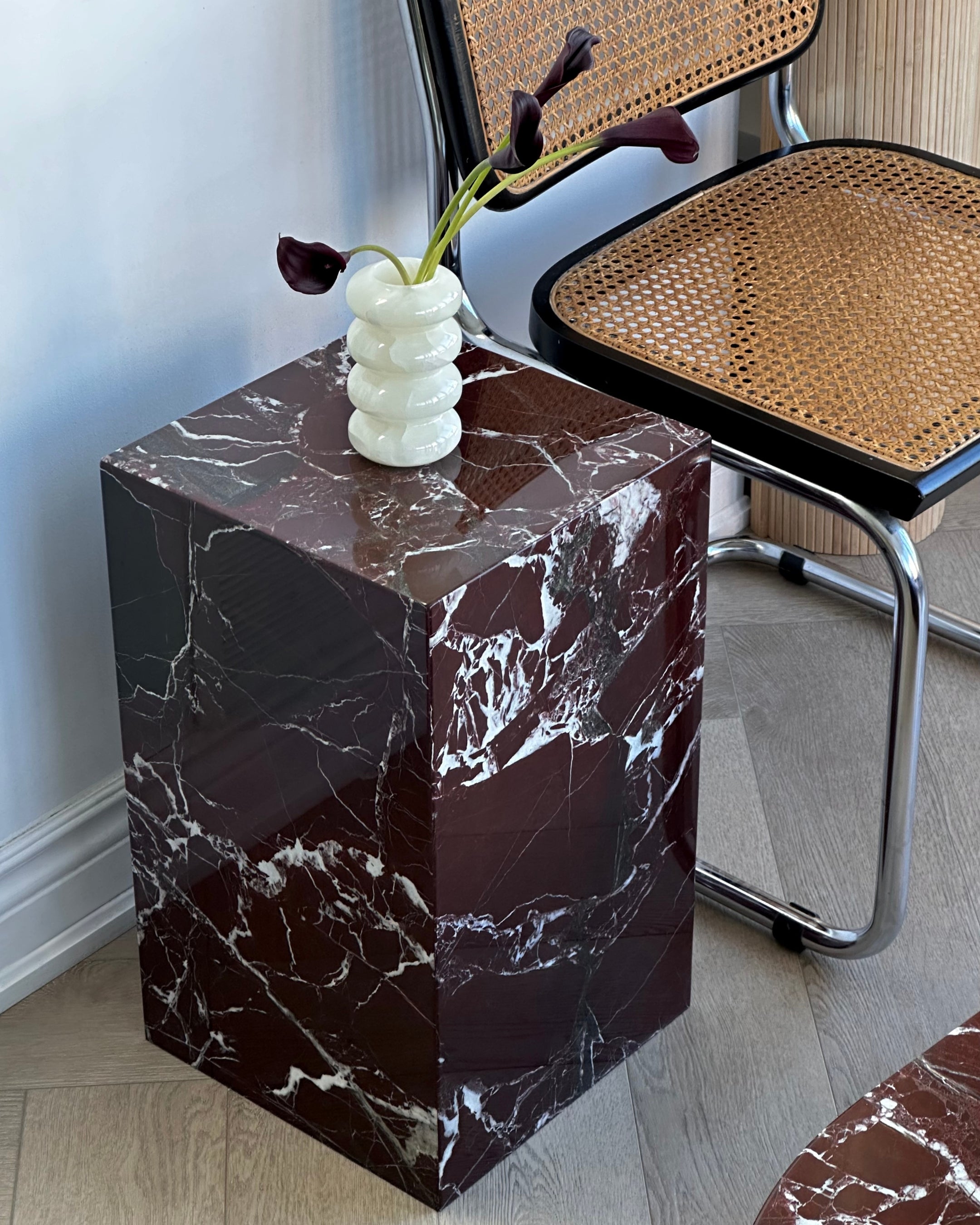Introducing the Rosso Levanto Plinth from our in-house collection. Crafted from hand selected Italian Rosso Levanto marble brought to a high polish finish. Suitable on its own or as an end table for your bedside or living room.
