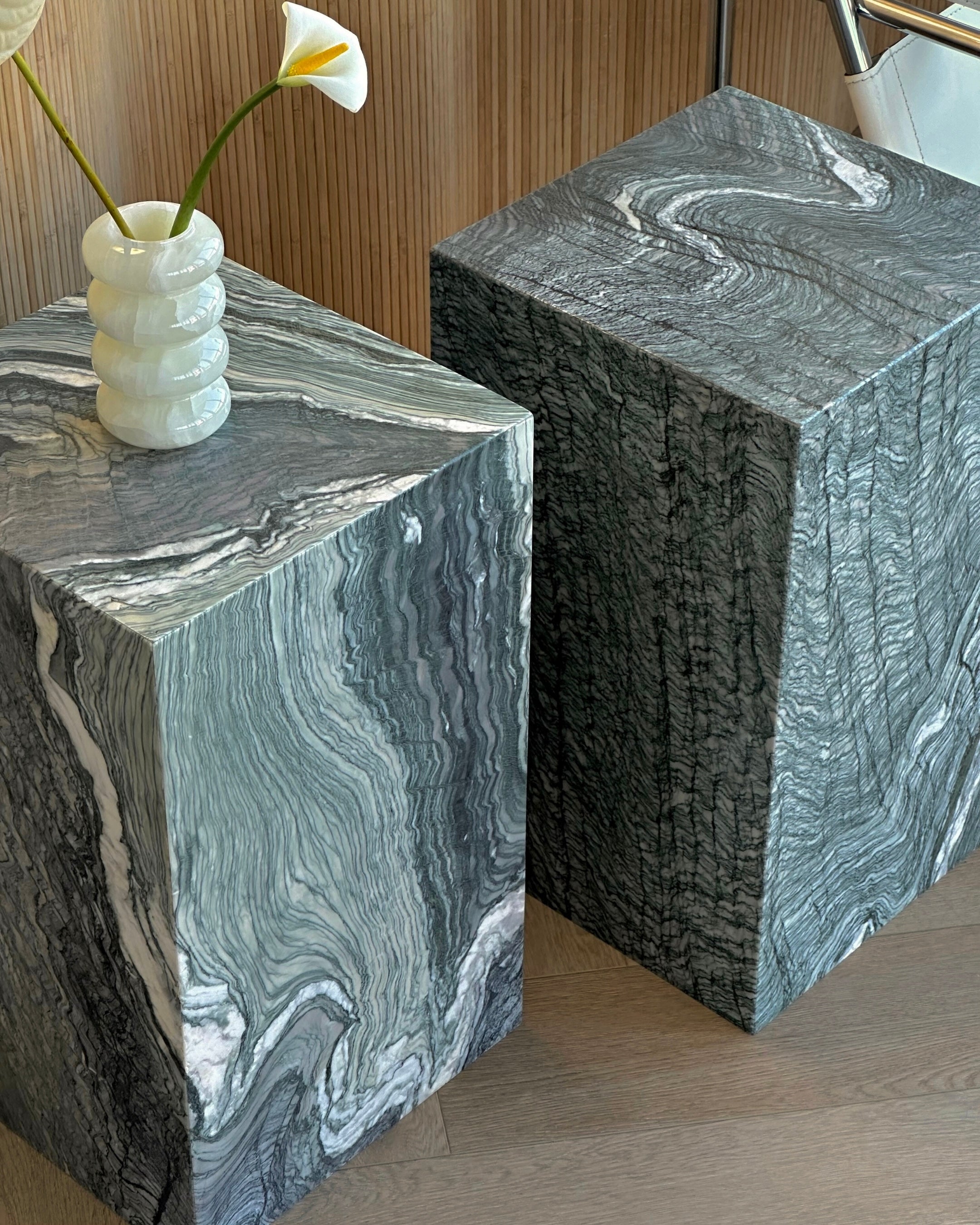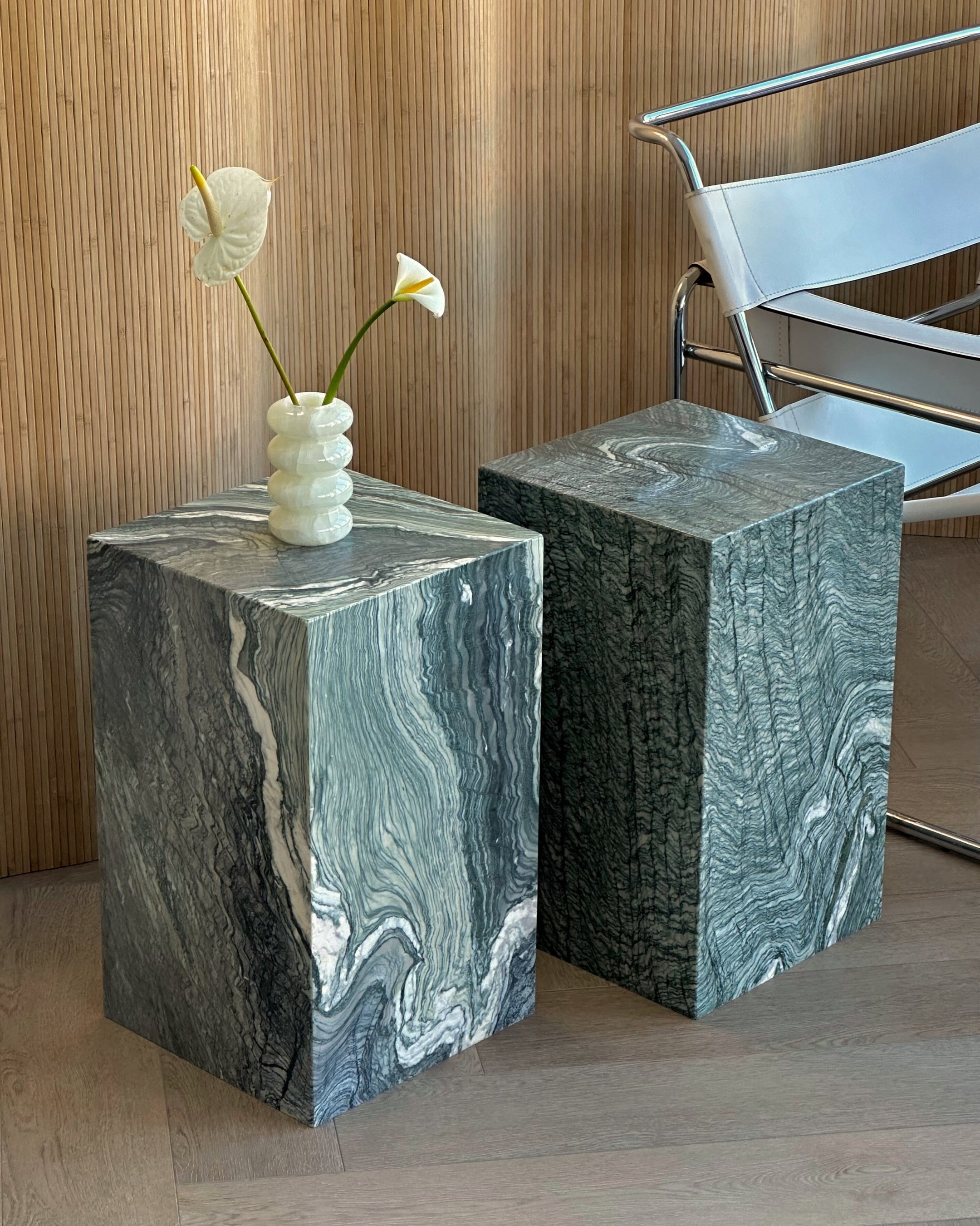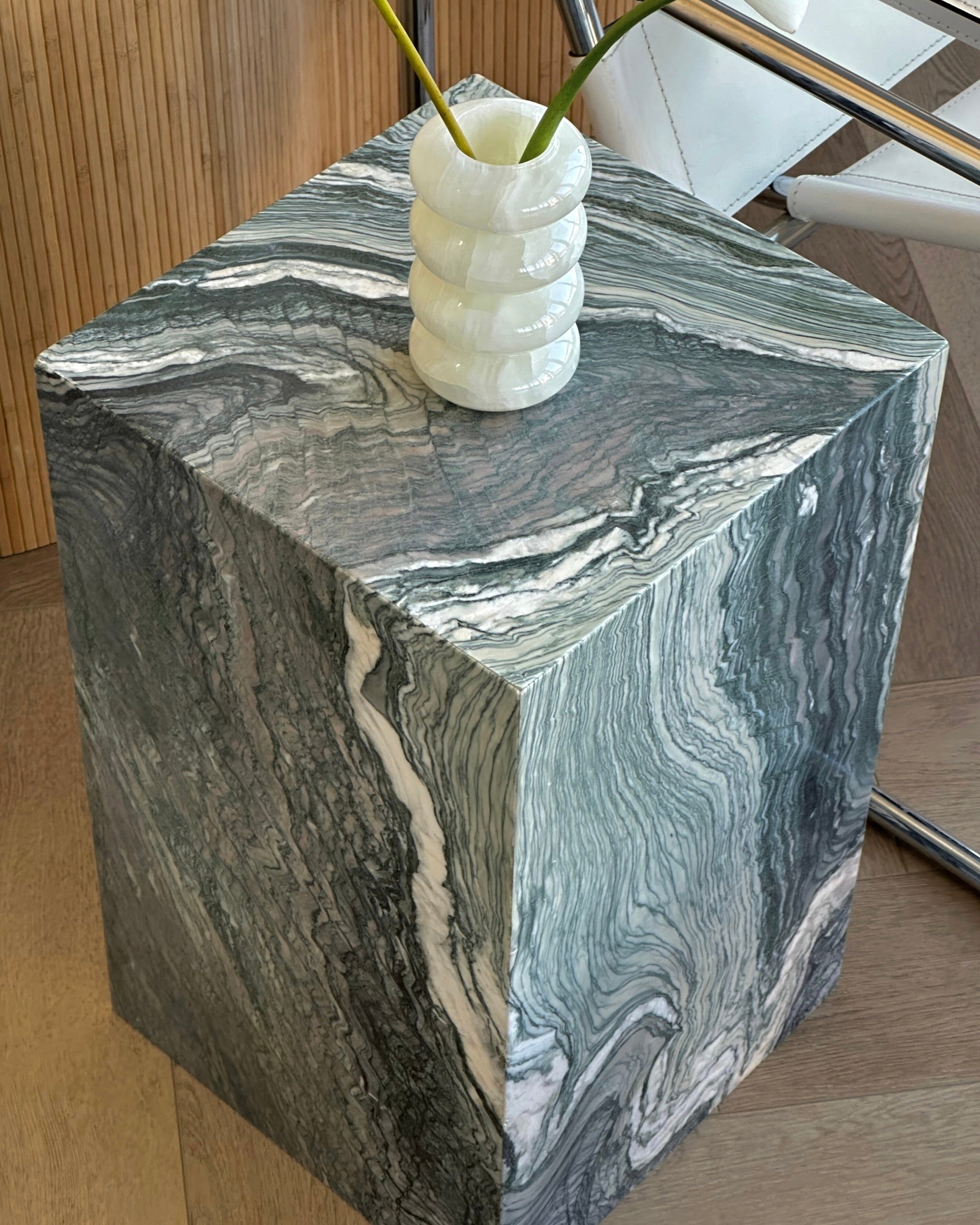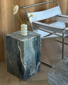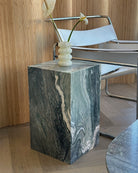Introducing the Verde Luana Plinth from our in-house collection. Crafted from hand selected Italian Verde Luana marble brought to a satin finish. Suitable on its own or as an end table for your bedside or living room.