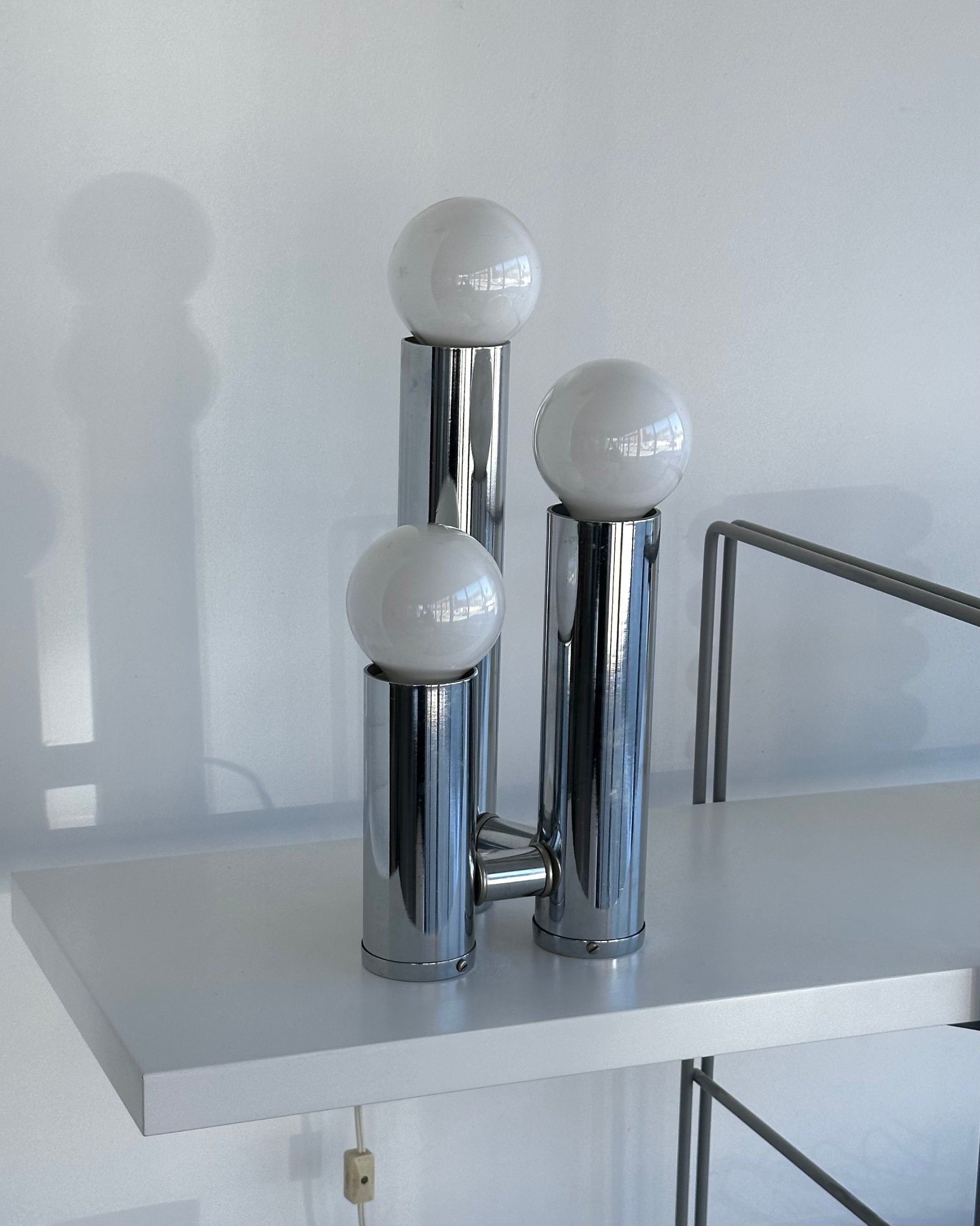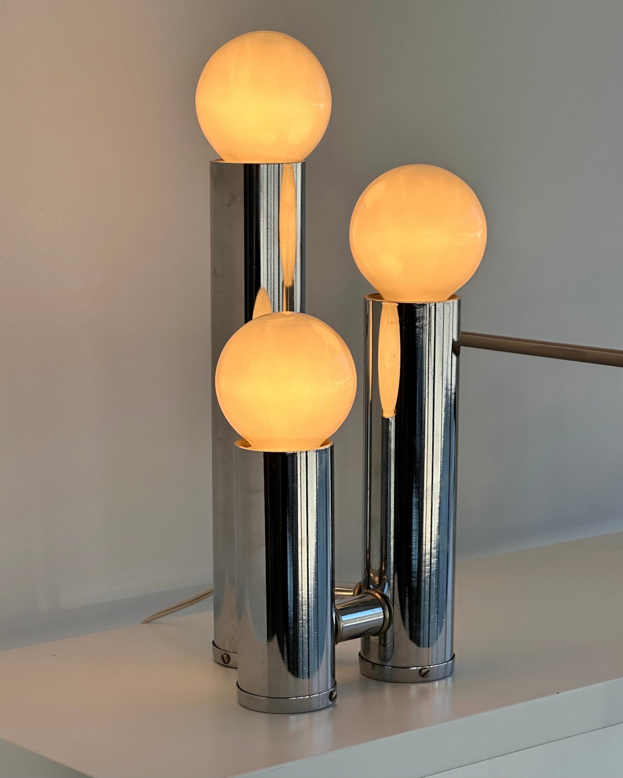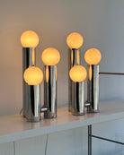 Tubular Chrome Tri-bulb Table Lamps
