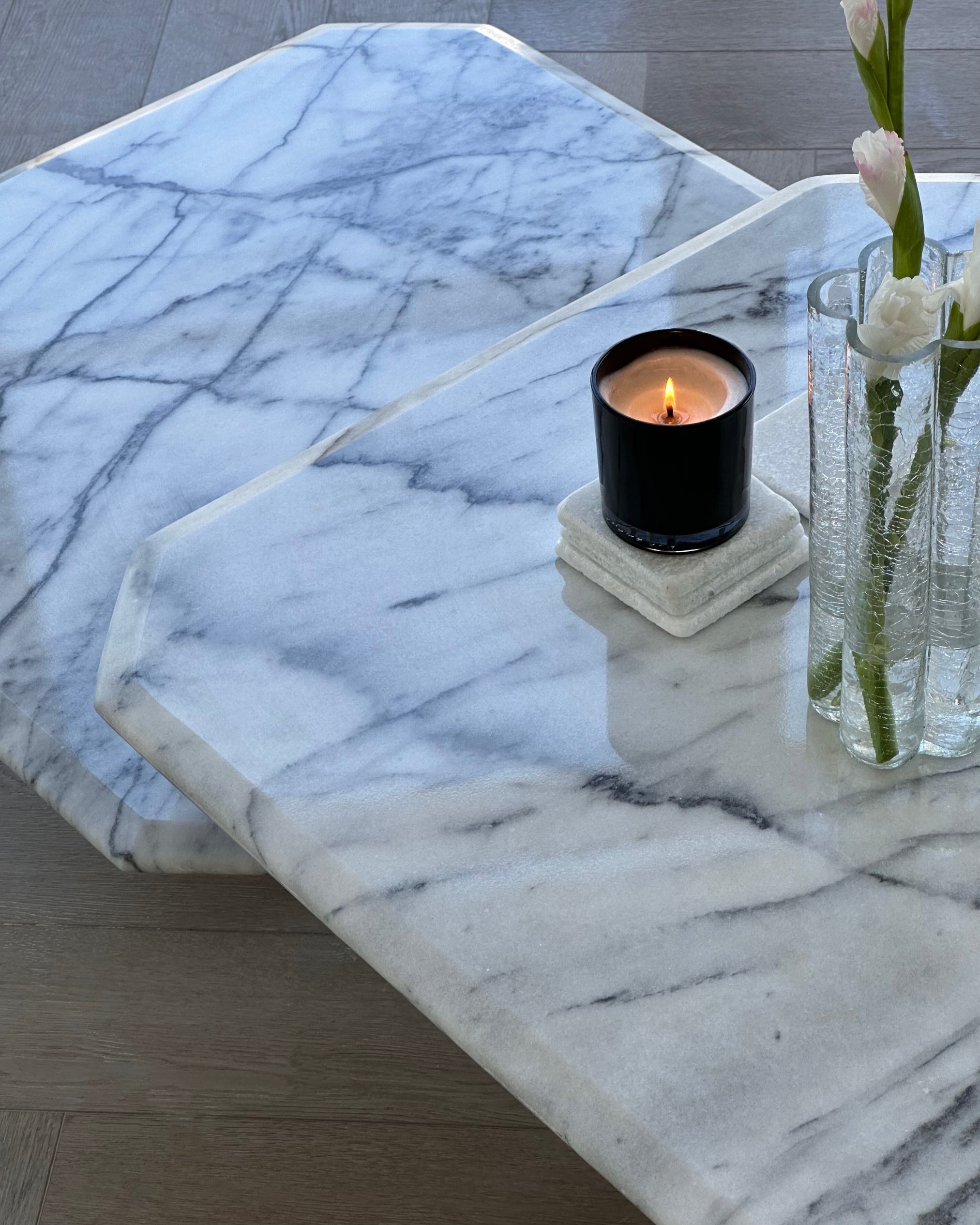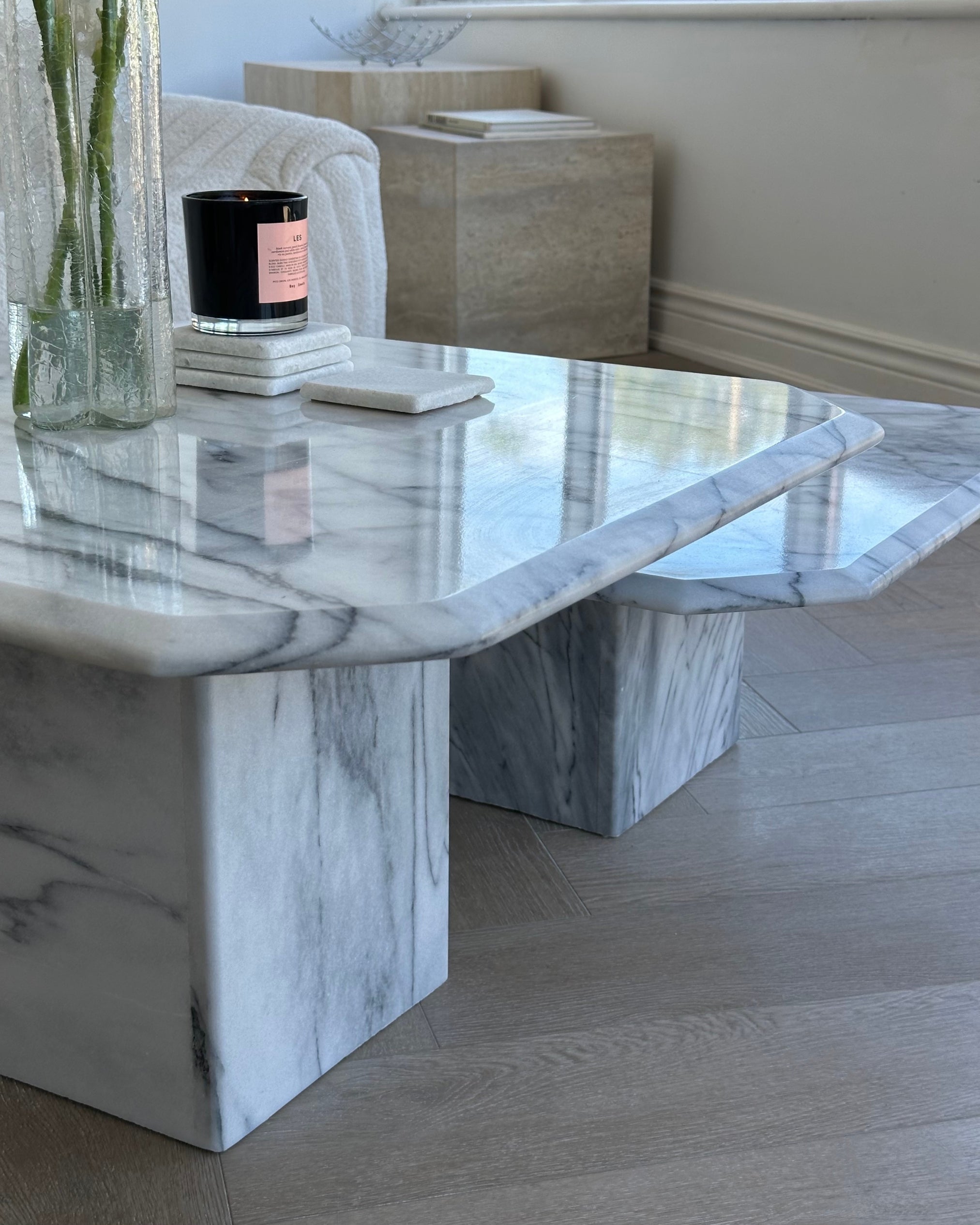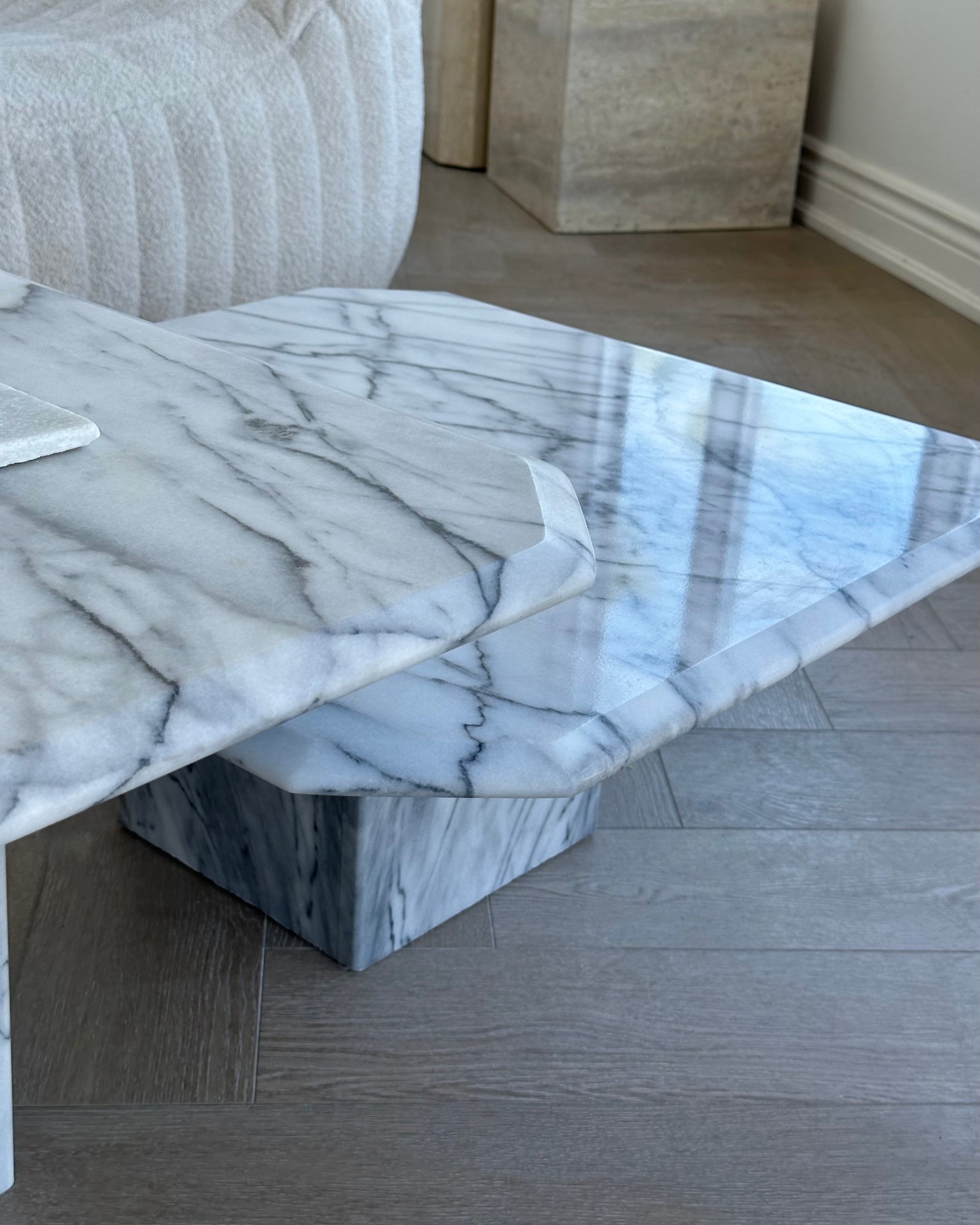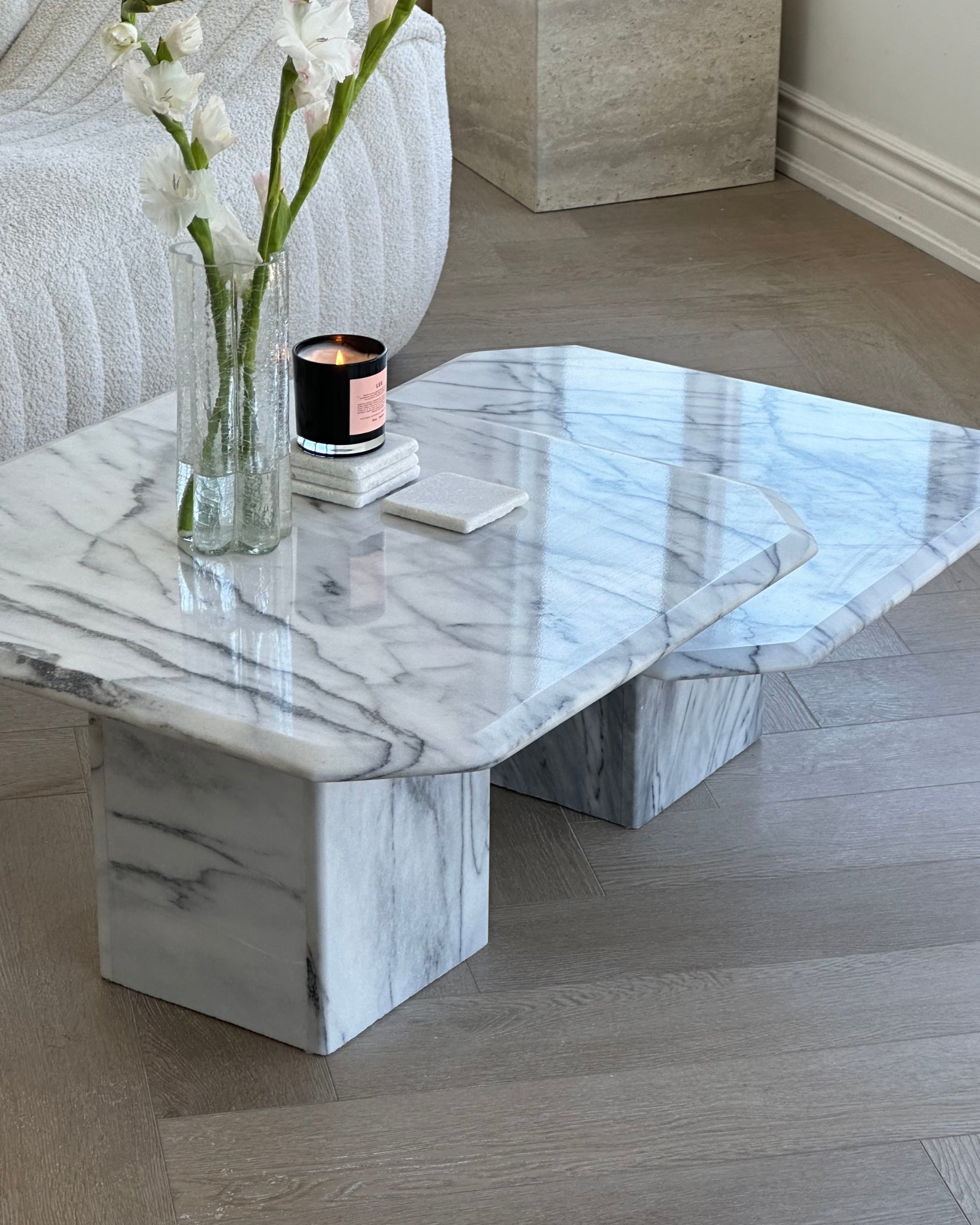 Two-tier Nesting Carrara Marble Coffee Table Set