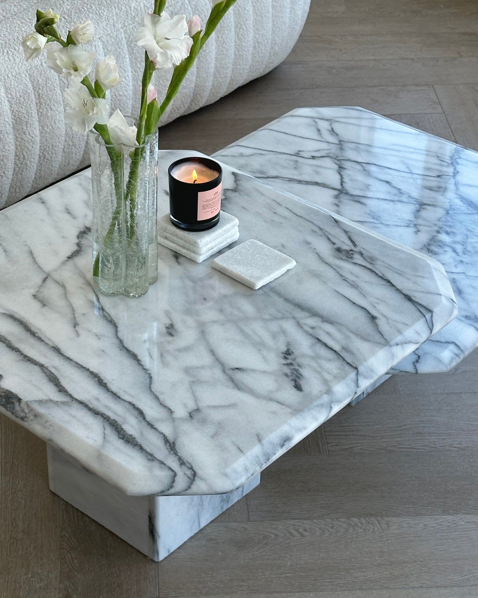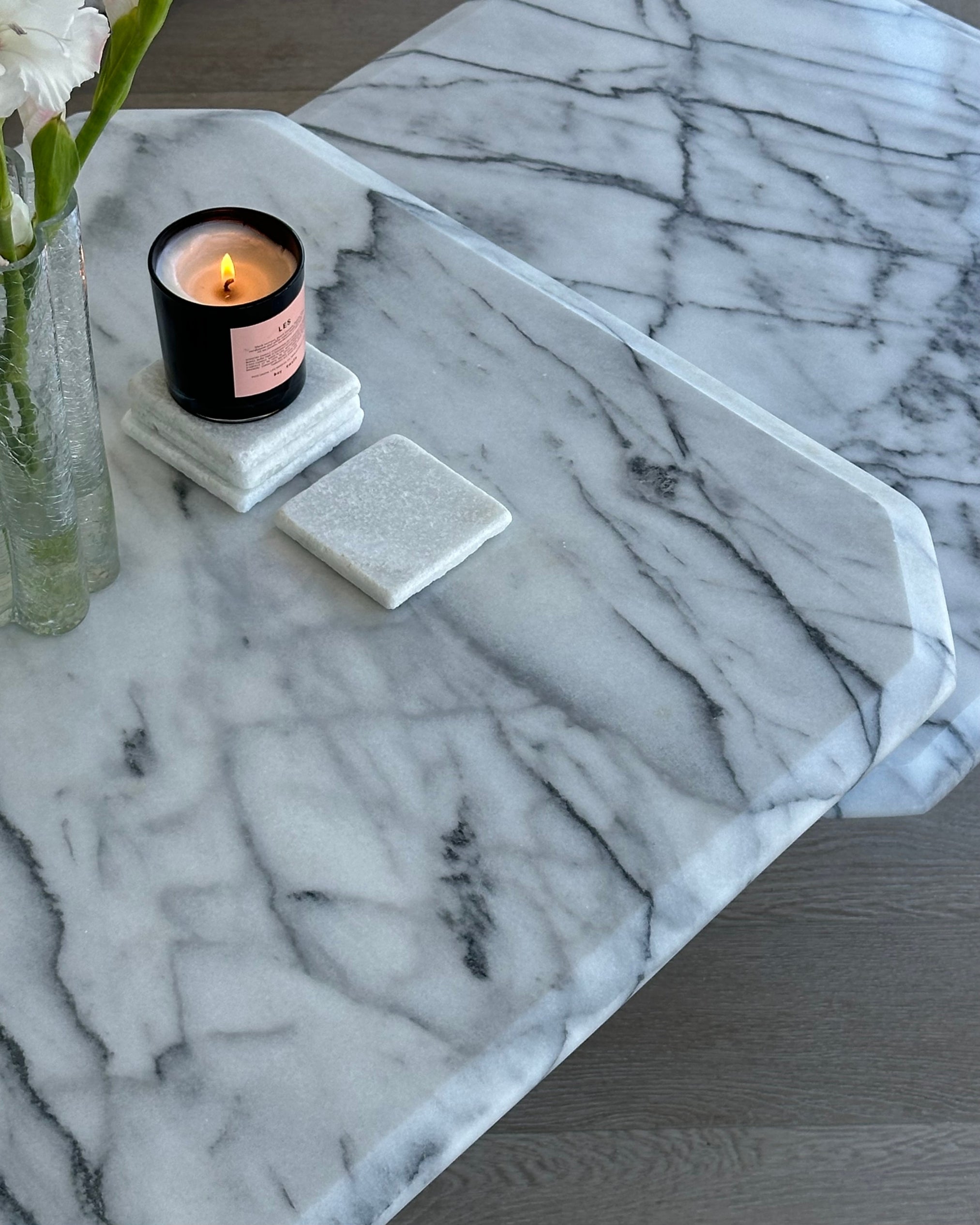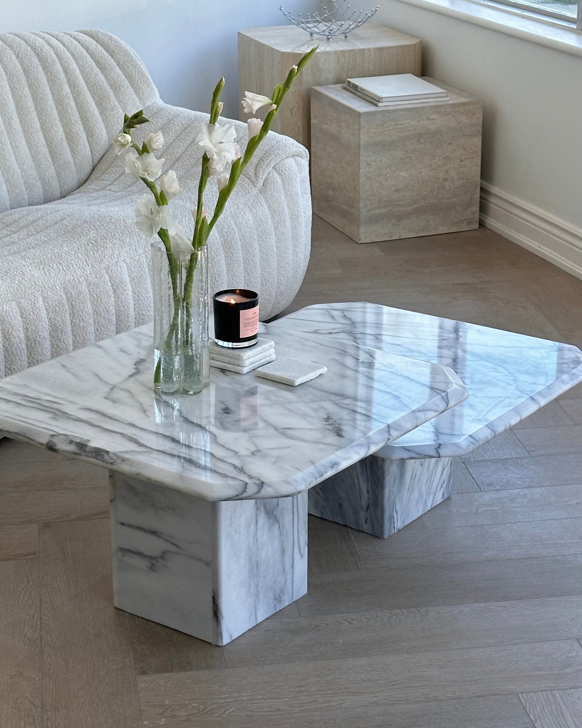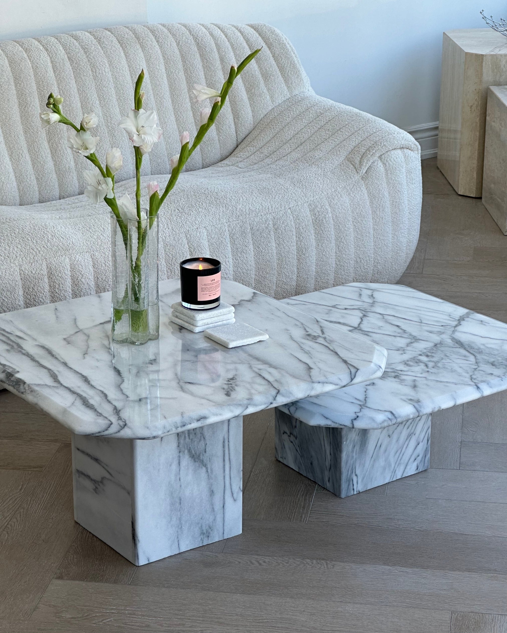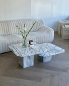 Two-tier Nesting Carrara Marble Coffee Table Set