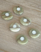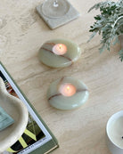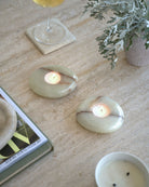 The Pebble Tea Light Pair; Striped Light Green Onyx