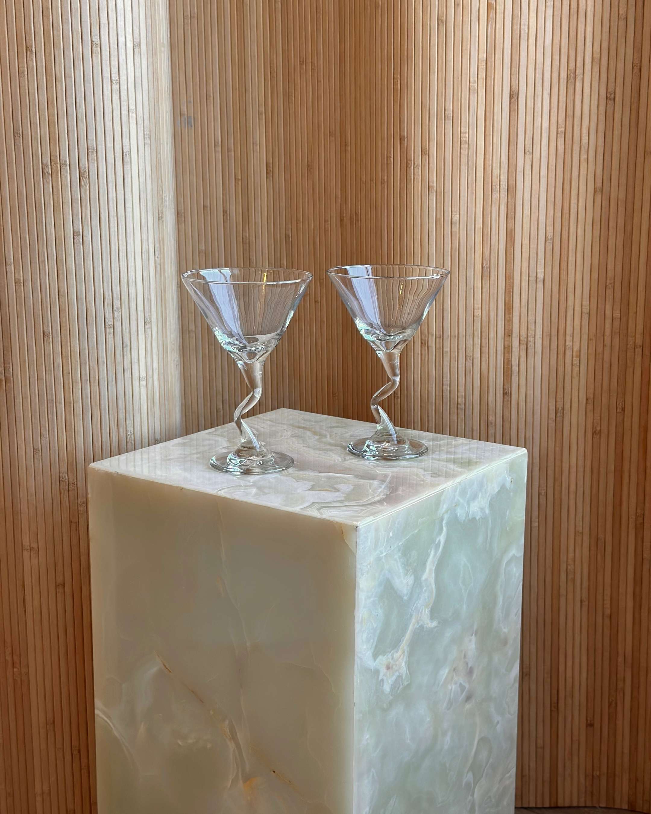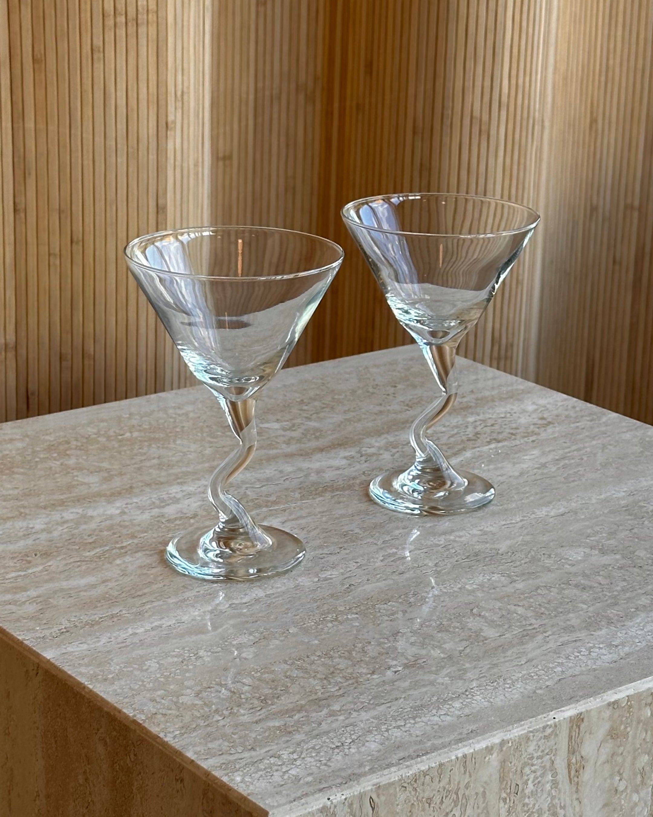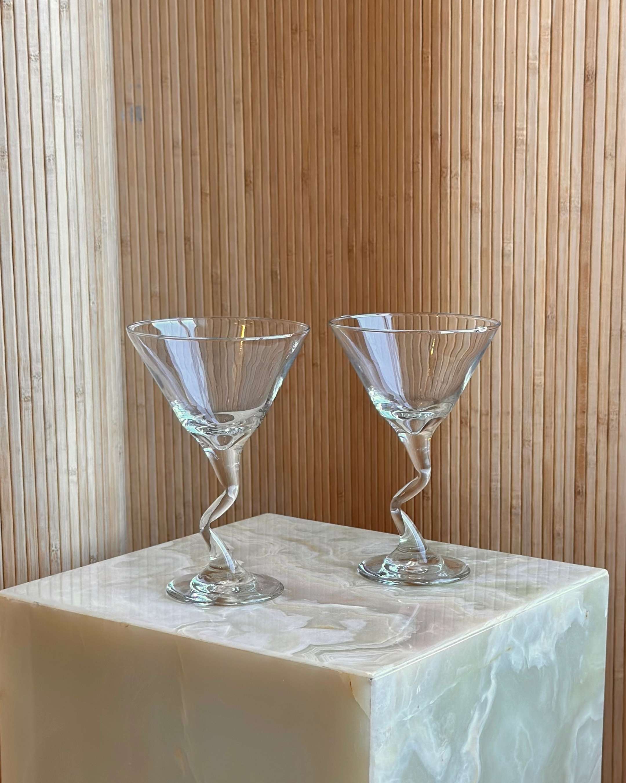 Pair of Wavy Stem Libbey Martini Glasses. Excellent vintage condition.